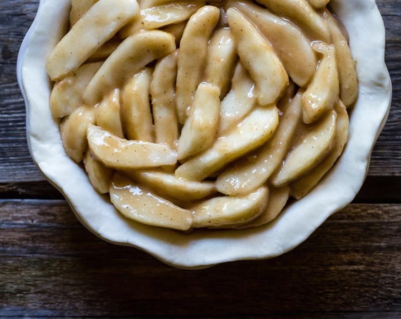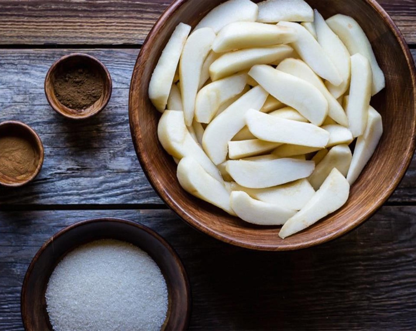 Die geschälten und in Scheiben geschnittenen Birnen (1.4 kg) mit Zitronensaft (2 Esslöffel) beträufeln. In einer grossen Schüssel Mehl (2 Esslöffel), Zucker (65 g), Zimt (1/4 TL) und Nelken (1/8 TL) mischen. Birnen hinzufügen und vorsichtig durchschwenken, um sie zu überziehen.