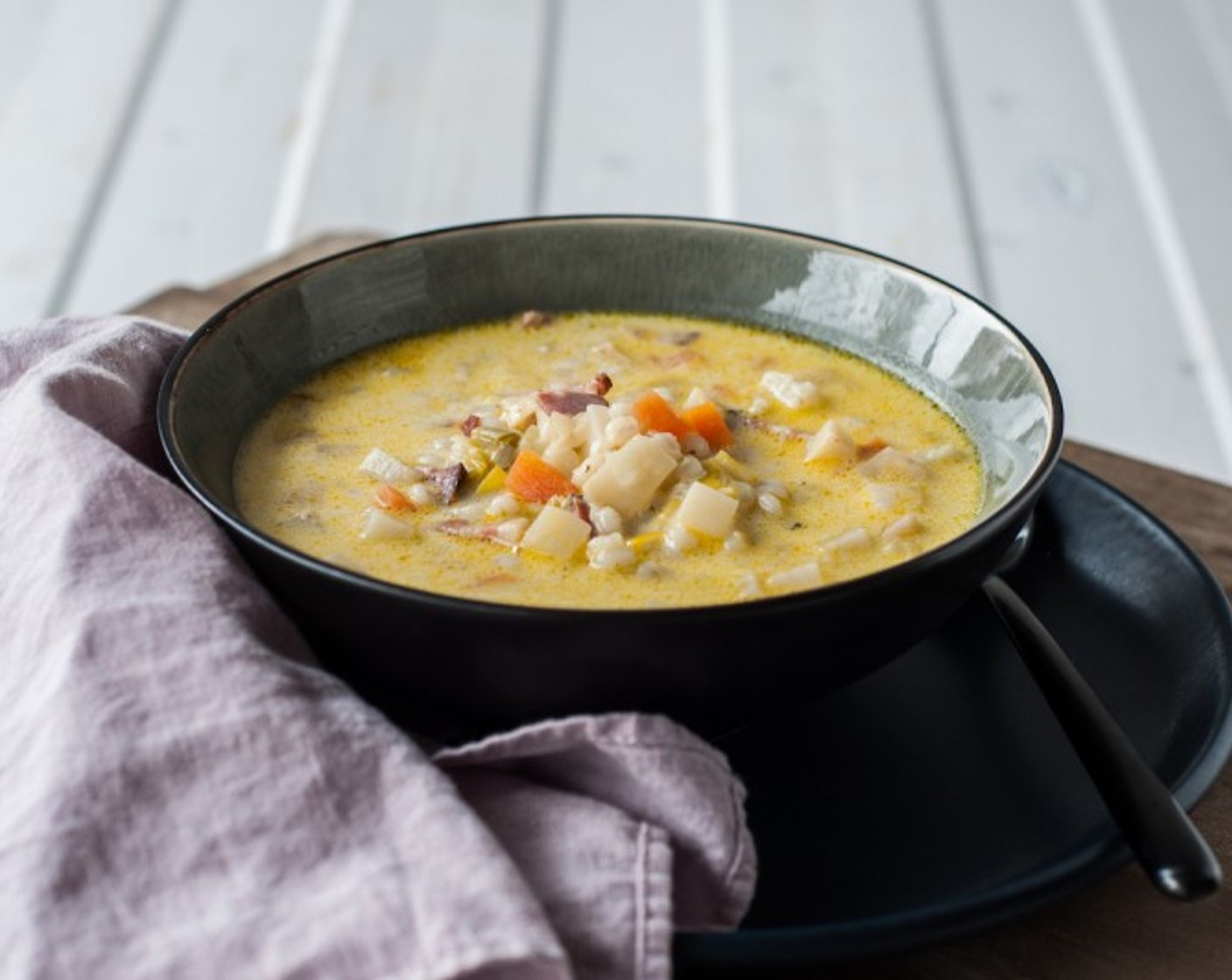 Dieses Rezept weckt Erinnerungen an sonnige Skitage in den Bergen. Mit Gemüse, Speck und Gersten verleiht diese feine Suppe so richtig Energie für powervolle Tage mit der Familie.