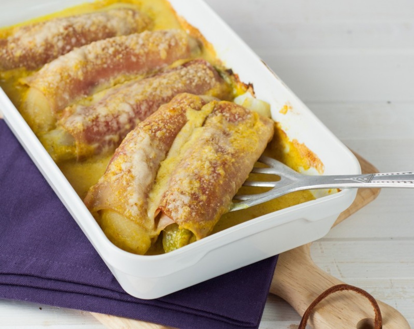 Dieser Bananen-Chicorée-Auflauf ist ein Lieblings-Rezept aus unserer Kindheit. Das Winter-Saisongemüse Chicorée kennen wir alle als Salat, es ist aber auch überbacken sehr lecker! Probiere es aus!