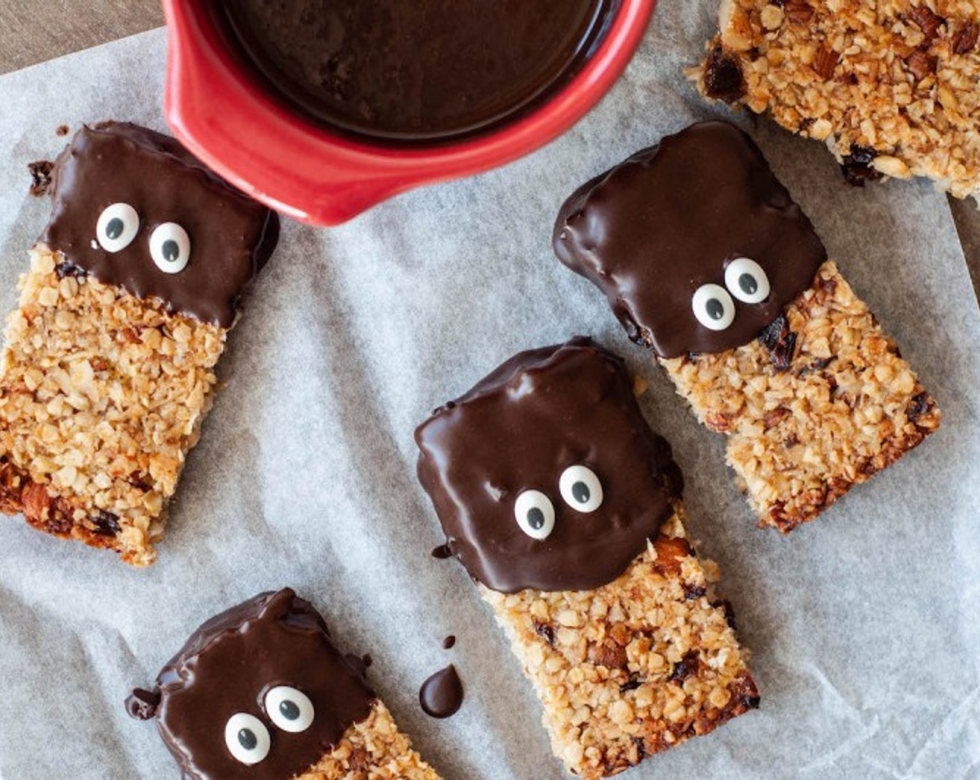 Selber Müesli-Riegel herstellen ist keine grosse Sache und so weisst du genau, welche Zutaten darin enthalten sind. Wer mag kann die fertigen Riegel in etwas flüssiger Schoggi ‘tünkle’ und Zuckeraugen aufkleben – so sind sie bei deinen Kindern garantiert heissbegehrt!