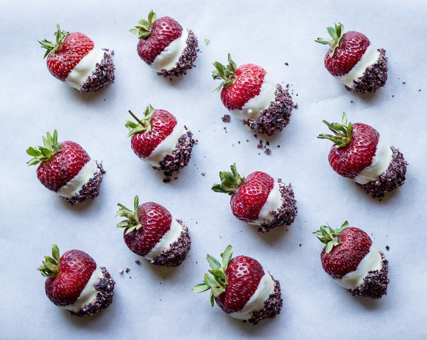 Bereit für ein Geschmacksabenteuer der Extraklasse? Alle Erdbeer-Fans kommen hier auf ihre Kosten. Jeder Bissen ist ein Fest für die Sinne – wenn die knackige weisse Schoko-Hülle aufbricht und das saftige Innere der Erdbeere enthüllt, während die gefriergetrockneten Blaubeeren eine süsse und aromatische Note hinzufügen. Diese kleinen Kunstwerke sind nicht nur ein Dessert, sondern ein wahres Erlebnis. Egal ob als verführerisches Dessert bei einem festlichen Anlass oder als süsse Überraschung für den Liebsten – diese Erdbeeren sind garantiert der Höhepunkt jeder Feierlichkeit.