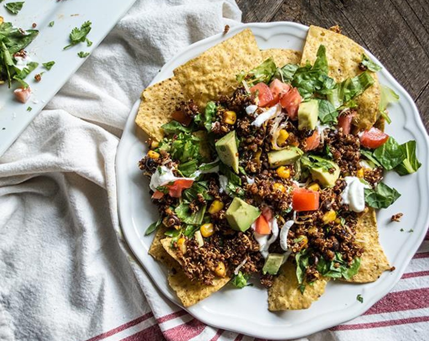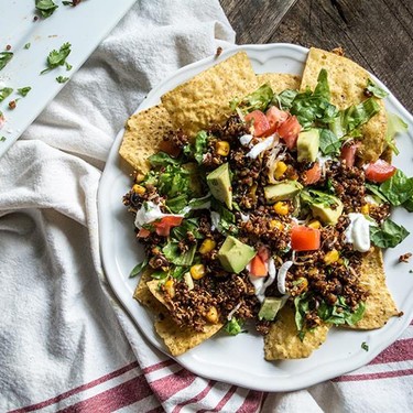 Diese vegetarischen Nachos mit Quinoa und schwarzen Bohnen sind gesund und köstlich! Perfekt für jeden Anlass.