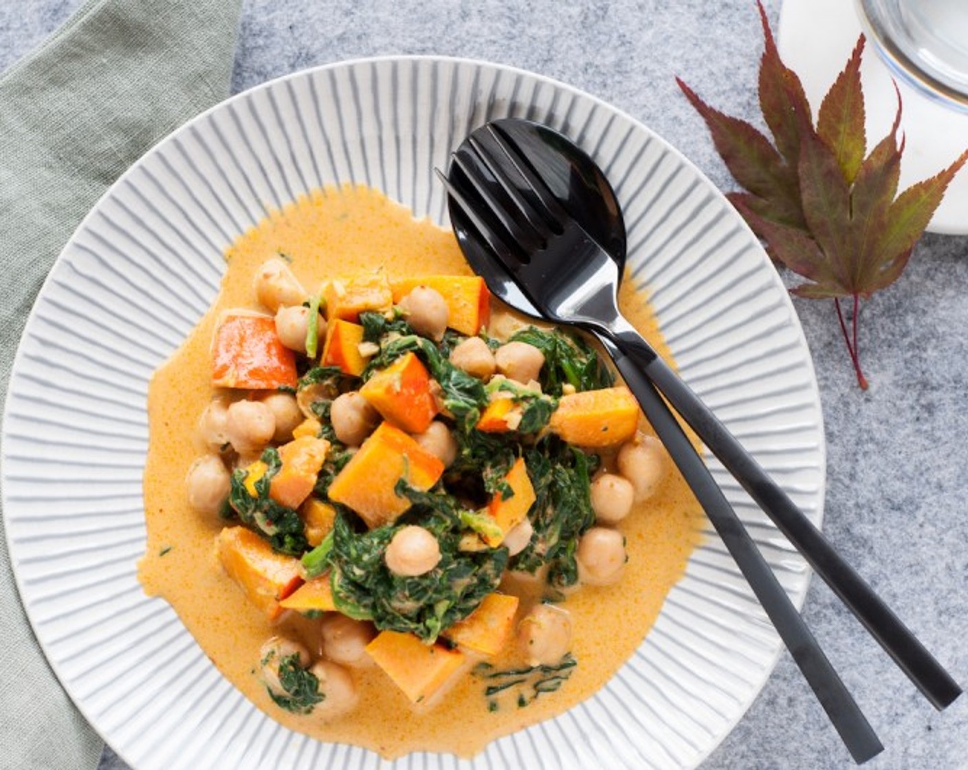 Dieses Kürbis-Curry mit Kichererbsen und Spinat ist wahrhafter Feel-Good-Food! Die gute Laune wird durch die Tatsache verstärkt, dass das Gericht ein Low-Carb-Menü ist. Lecker essen und dabei wenig Kohlenhydrate zu sich nehmen!
