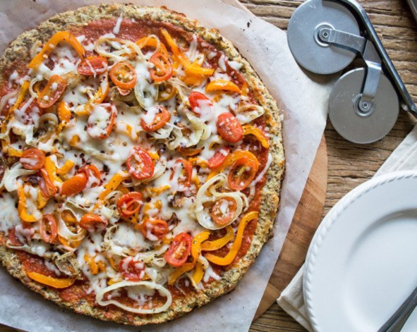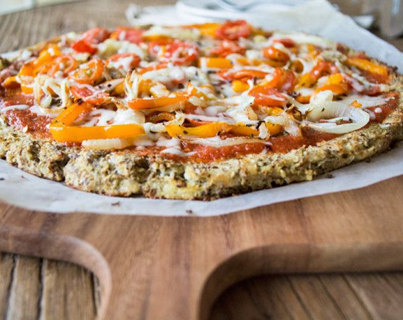 Diese Blumenkohl-Leinen-Pizza mit Gemüse stillt Ihren Pizzahunger und sorgt gleichzeitig dafür, dass Sie gesund essen!