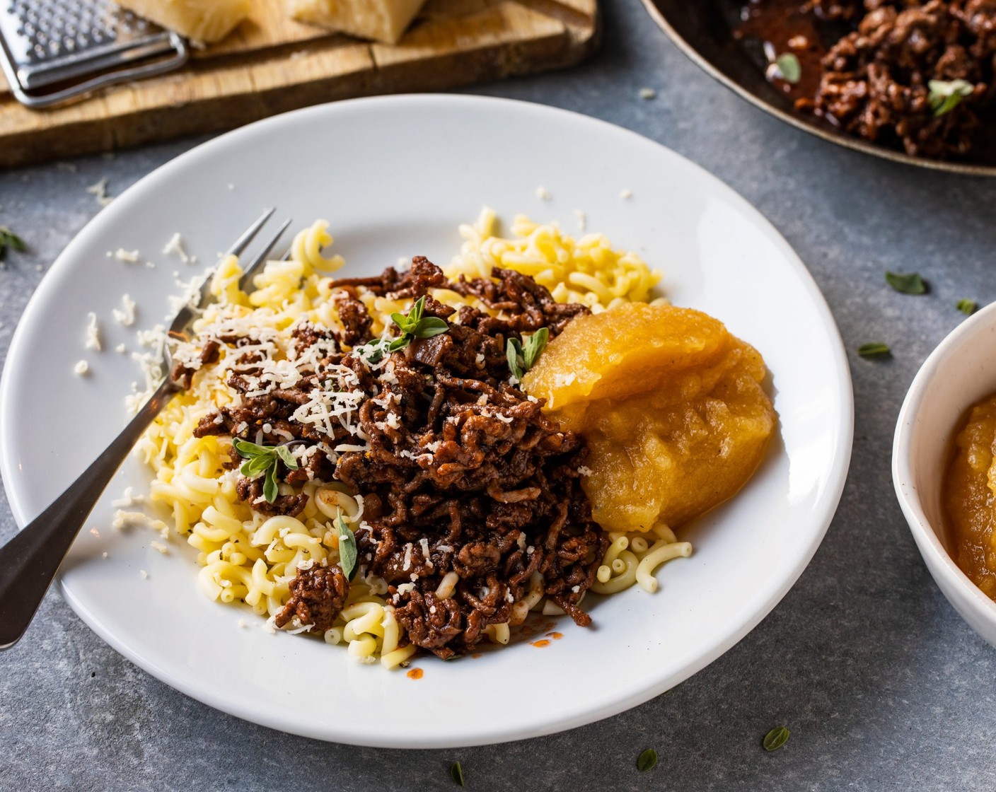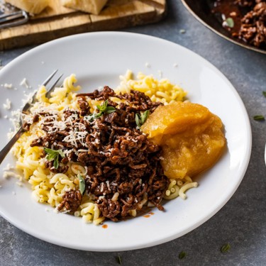 Ghackets und Hörnli – ein Schweizer Klassiker. Das Gericht aus Hackfleisch und selbst gemachtem Apfelmus aus Schweizer Äpfeln ist schnell zubereitet. Wir ❤ saisonal & regional.