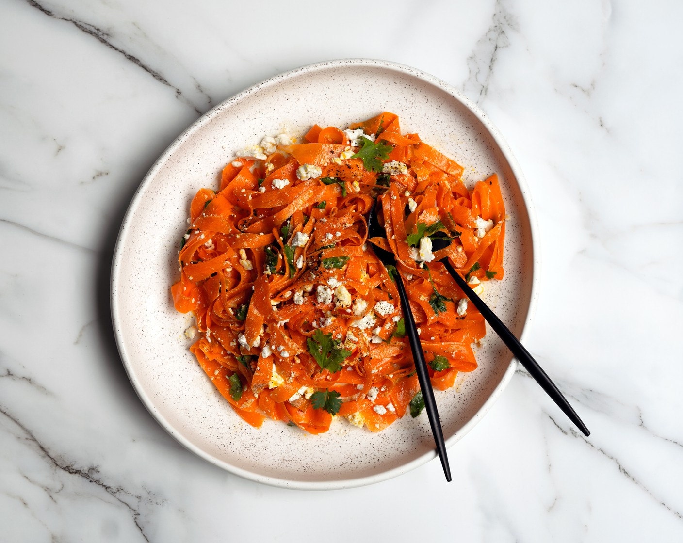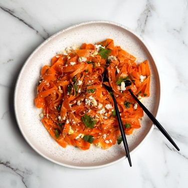 Dieser herrliche Sommersalat erfrischt jede Party. Das Geheimnis? Die Verwendung eines einfachen Gemüseschälers, um knackige Karotten in hübsche Spiralen zu verwandeln. Zusammen mit einer süss-würzigen Vinaigrette und cremigem Feta werden Karotten zum Hochgenuss.