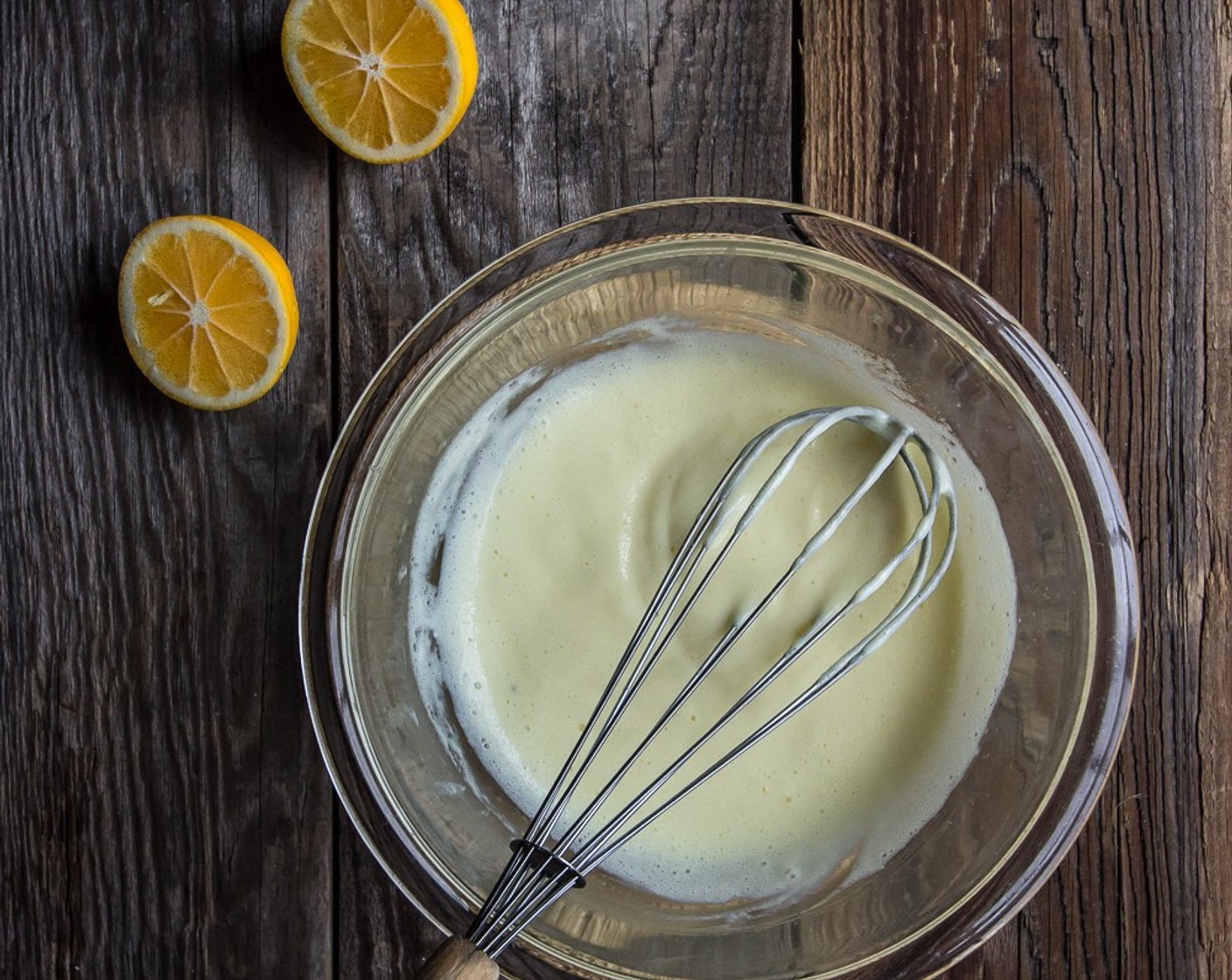 Die Sauce ist fertig, wenn der Schneebesen eine Spur hinterlässt. Vom Herd nehmen.