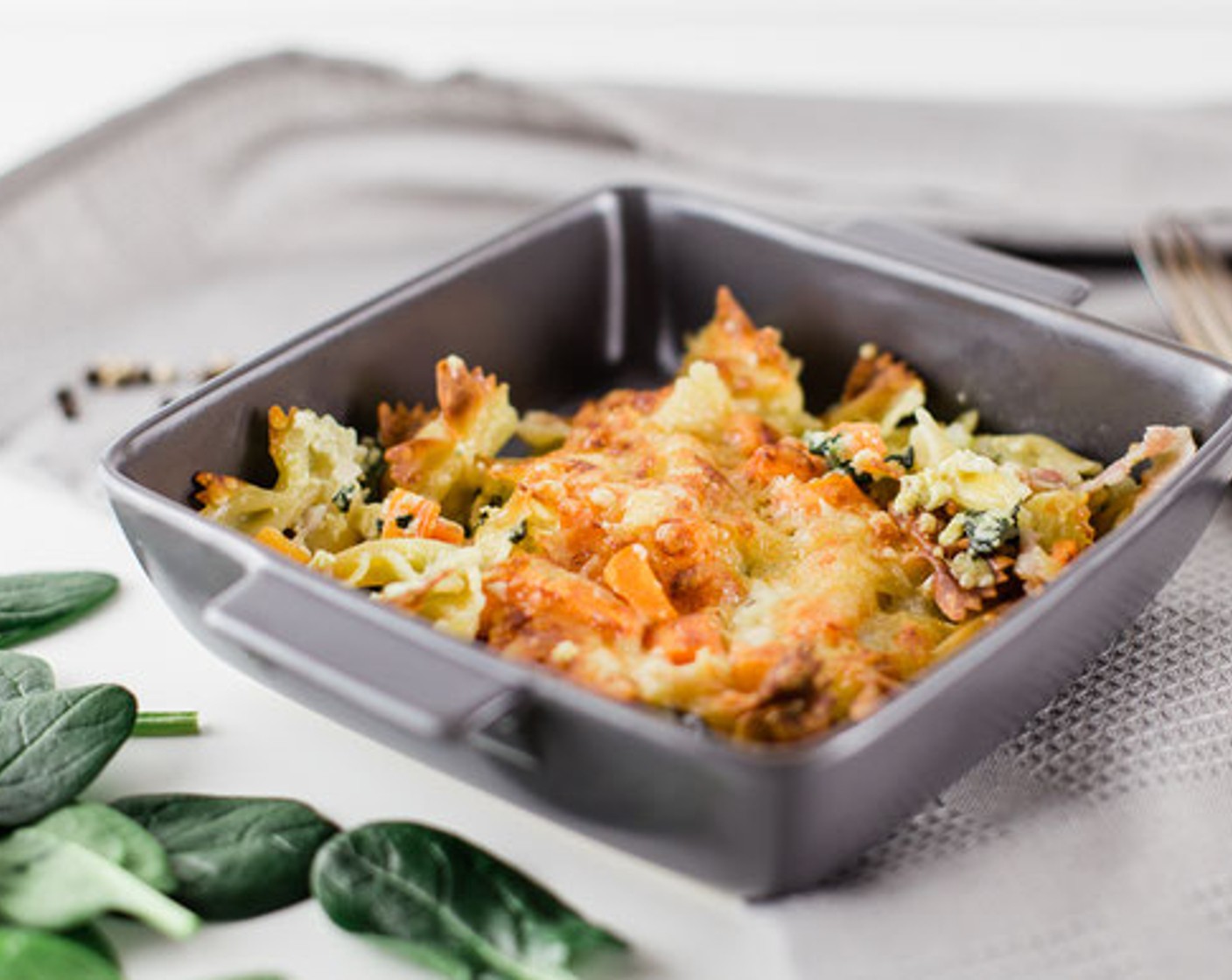 Dieser Nudel-Auflauf ist im Nu im Dampfgarer und schmeckt sehr fein. Ich verwende gerne Krawätli, aber es funktioniert natürlich auch mit Hörndli, Nudeln oder Müscheli. Das Gemüse kann individuell nach Wünschen oder was du gerade noch im Kühlschrank vorrätig hast, angepasst werden. Auch den Bratspeck kannst du einfach weggelassen für eine vegetarische Variante. Bei uns gibt's diesen Auflauf immer, wenn ich keine Zeit zum kochen und trotzdem Lust auf ein warmes Abendessen habe.