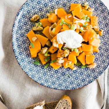 Mit einem der letzten Kürbisse von unserem Garten habe ich das Rezept "Lauwarmer Kürbissalat" ausprobiert. Es ist im Nu auf dem Teller und schmeckt sehr fein. Der Frischkäse und die Frühlingszwiebeln verleihen diesem Gericht eine erfrischende Note, die super mit der süsslichen Sauce harmonisiert. Es muss also nicht immer Kürbissuppe sein, sondern darf auch mal Salat oder Mousse geben. Diese Variante gibt's bei uns bestimmt öfters mal wieder und kommt sicher auch bei Gästen sehr gut an.