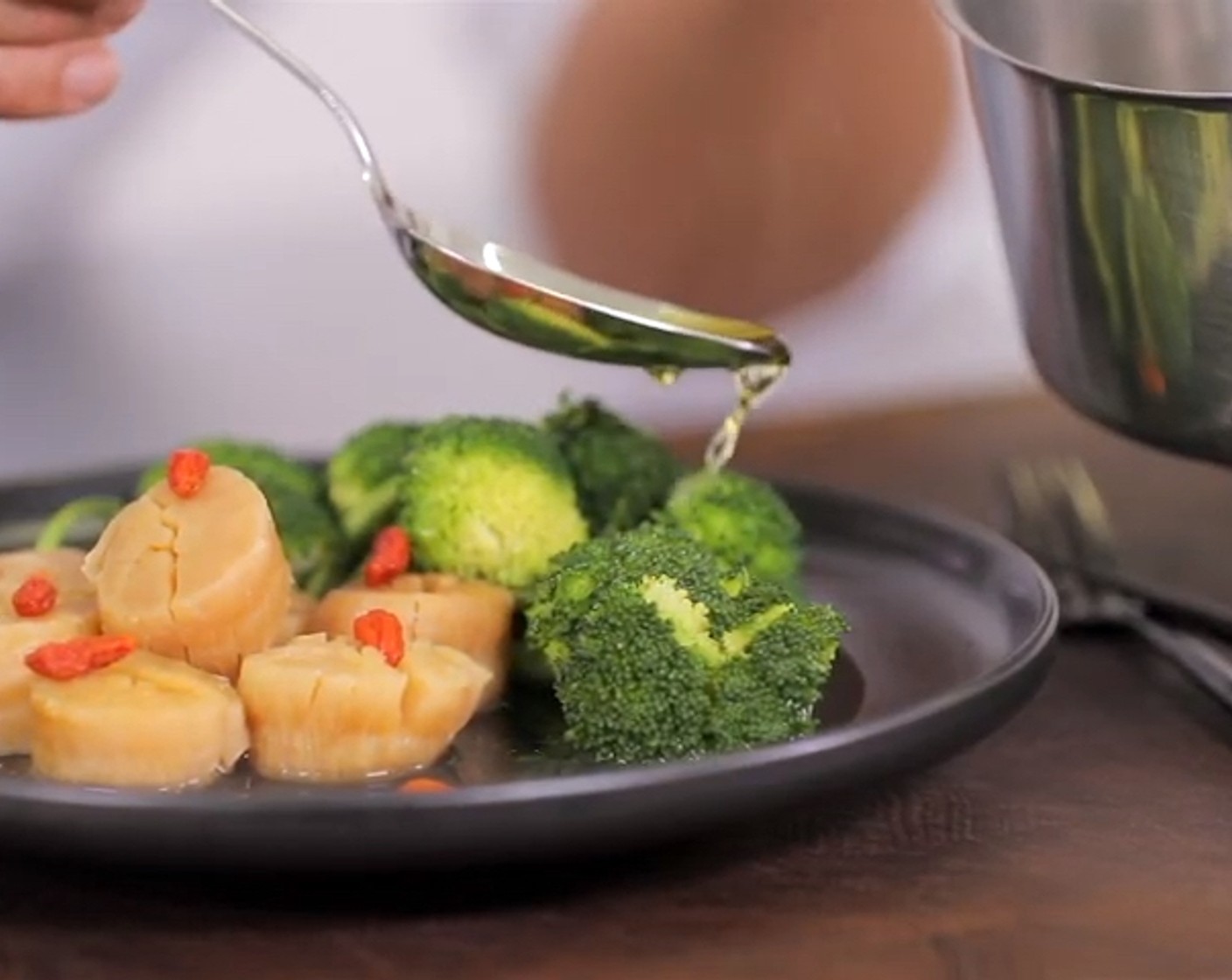 Gedämpfte Jakobsmuscheln mit Brokkoli<