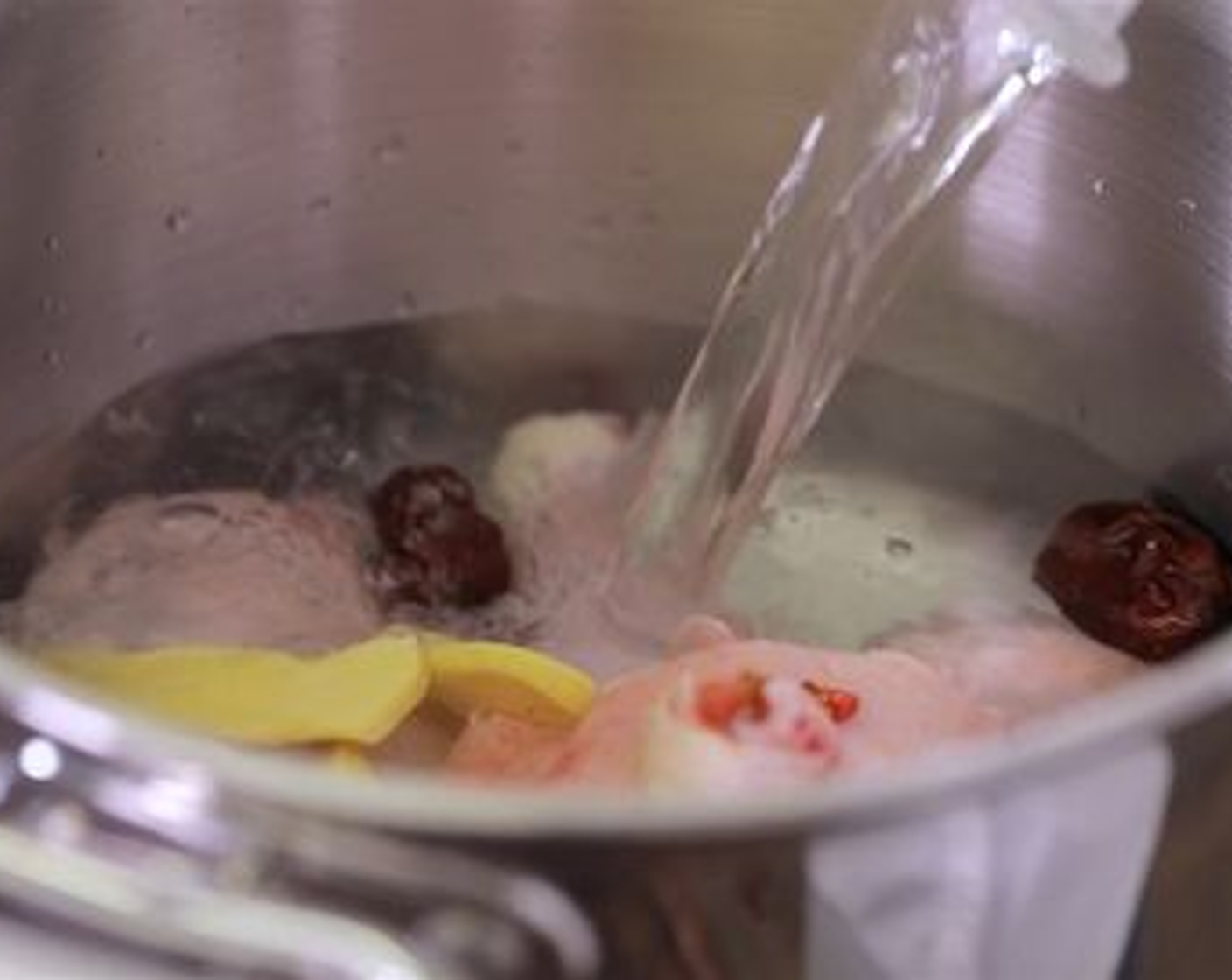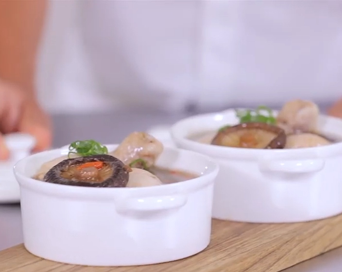 Shitake-Poulet-Suppe mit Gojibeeren und roten Datteln