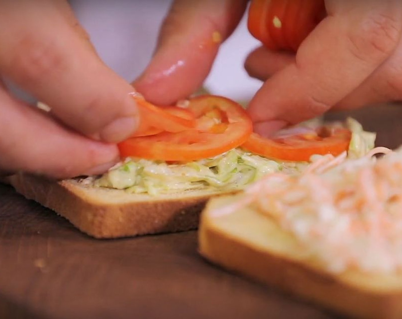 Schritt 10 Zwei Sandwiches in der folgenden Reihenfolge herstellen: Toastscheibe, Salatblatt (4 BlÀtter), zwei Crevetten, Toastscheibe, Aioli, Avocado, Speck, Tomate, Spiegelei, Toastscheibe.