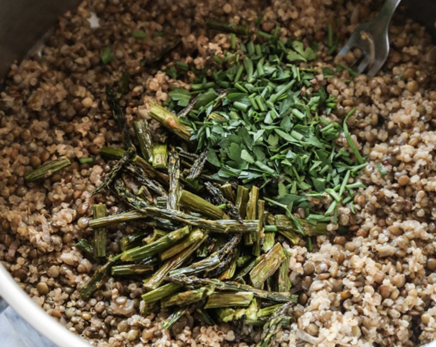 Diese Version eines authentischen libanesischen Mujadara-Rezepts verwendet Quinoa statt Reis, knusprige Schalotten anstelle von Zwiebeln und gerösteten Spargel. Es ist schnell und einfach - die Technik wurde von diesem Rezept der New York Times übernommen. Und es ist eine gesunde, gemüsebetonte Vollkornvariante des Originalgerichts!