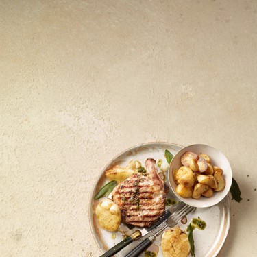 Das Zartfeine, nämlich das Kalbskotelett, trifft auf zwei Eigenwillige: Salbei und Knoblauch. Und das harmoniert ganz toll.