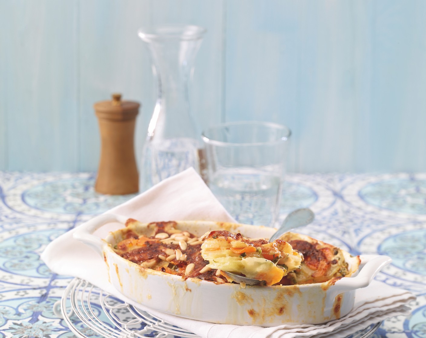 Durch Rüebli oder auch andere Gemüse wie Kürbis, Pastinaken oder Petersilienwurzeln bekommt ein Kartoffelgratin noch mehr Aroma und sieht zudem attraktiv aus. Der Blauschimmelkäse macht den Gratin besonders würzig. Wer es lieber mild mag, kann ihn durch Taleggio, Mozzarella oder Asiago ersetzen.