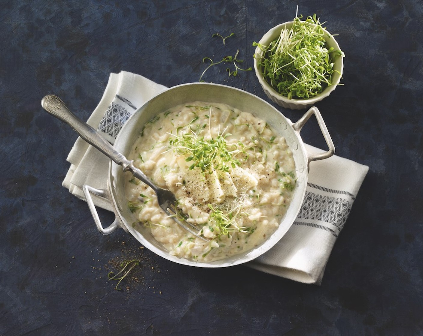 Mit der Gartenkresse können Sie unser würzig, aromatisches Risotto das ganze Jahr zubereiten.