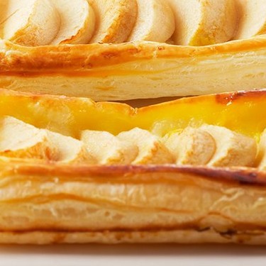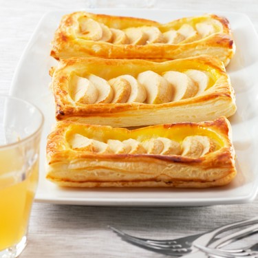 Die Blätterteig (2 Rollen) in je 8 gleich grosse Rechtecke schneiden. Ein Rechteck jeweils mittig mit etwas Wasser bestreichen und ein zweites Rechteck darauf setzen. Die Rechtecke auf zwei mit Backpapier belegte Backbleche verteilen.