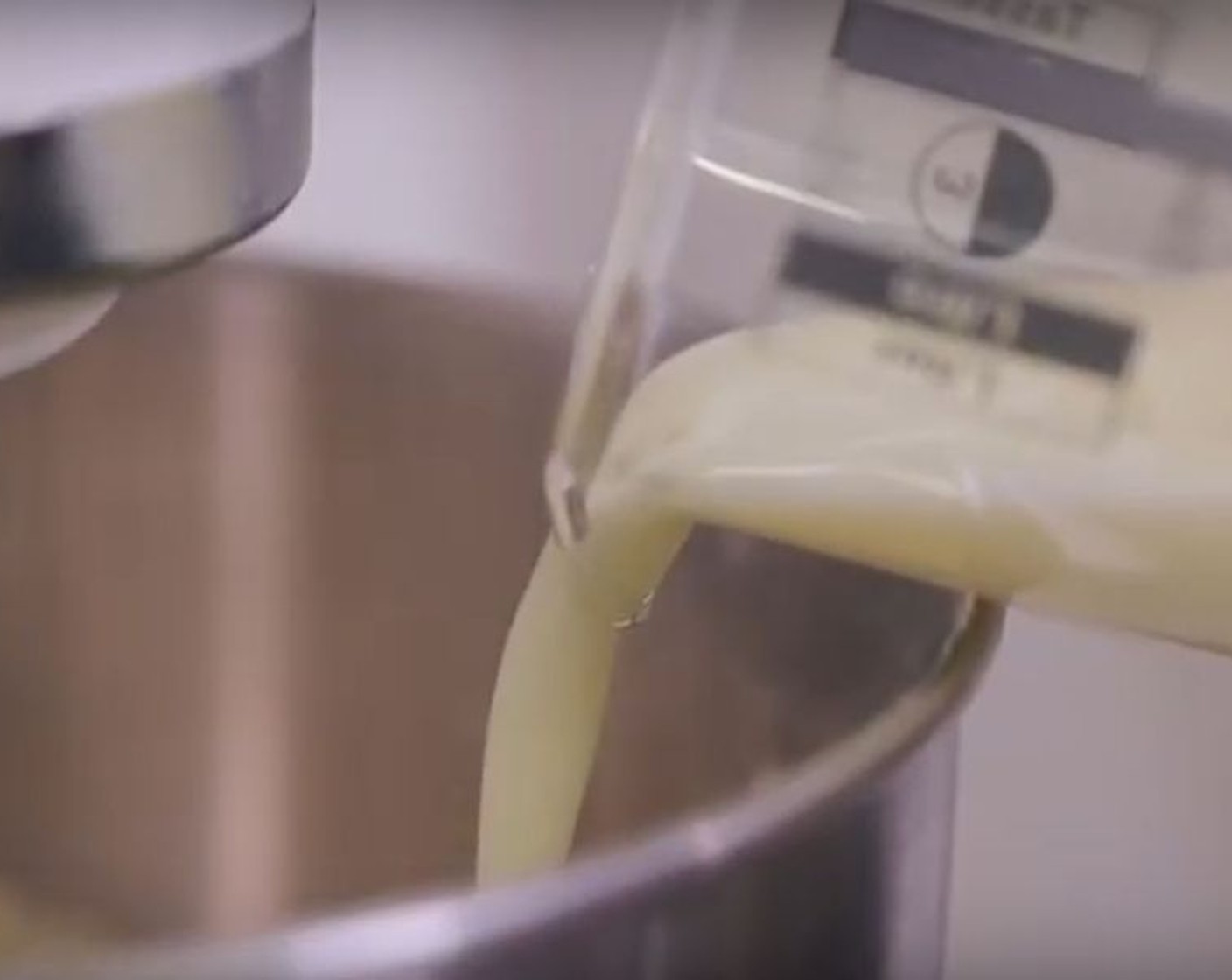 Als nächstes Mehl (500 g), Zucker (100 g), Salz (1 TL), Backpulver (1 2/3 Esslöffel) und Vanille-Extrakt (2 Messerspitzen) in eine Rührschüssel geben und mischen. Butter (200 g) in kleine Stücke schneiden, zugeben und so lange mischen, bis sich Streusel bilden. Danach die Buttermilch (300 ml) zugeben und die Masse kurz zu einem weichen Teig vermengen.