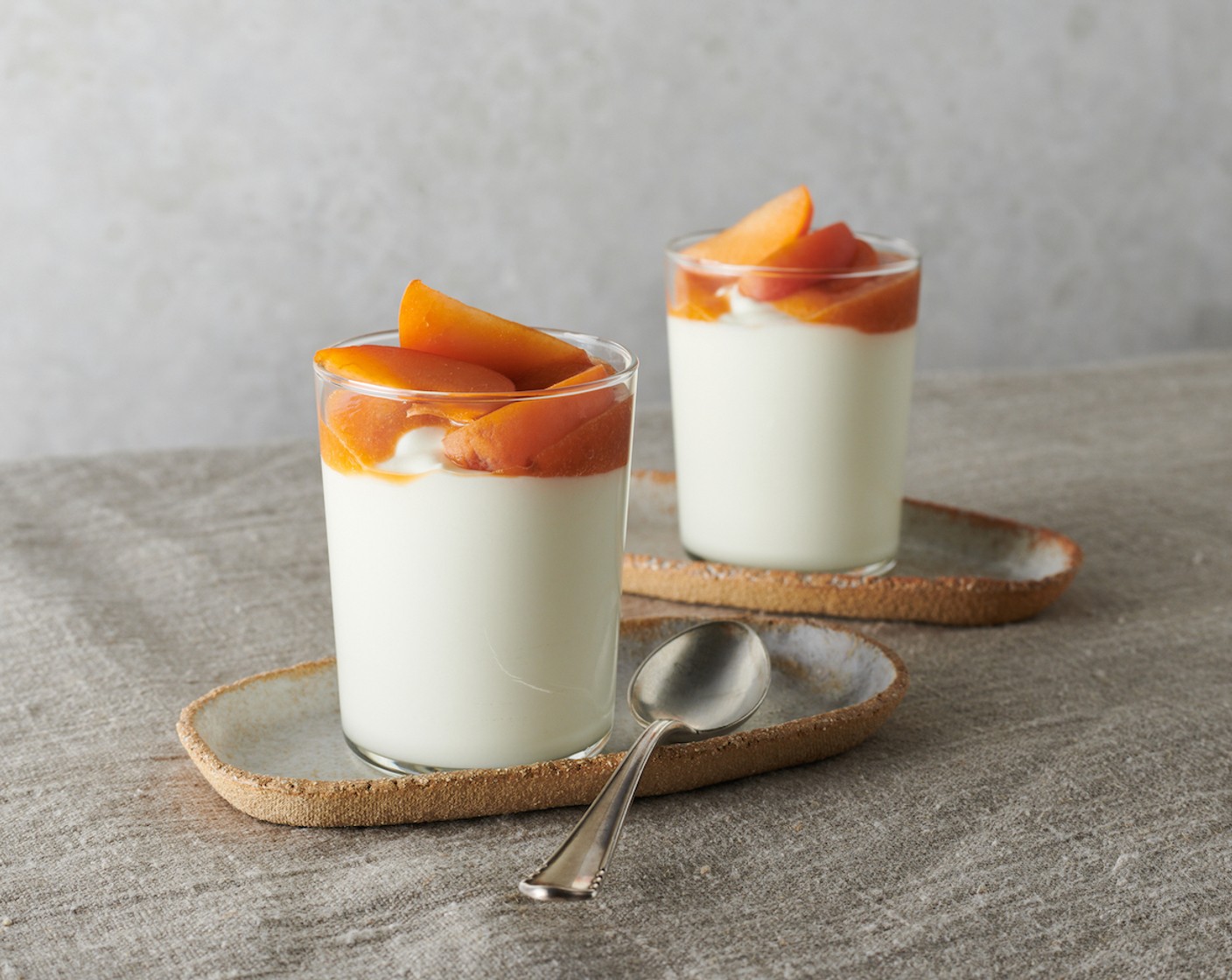 Eine leichtere Variante der italienischen Panna Cotta. Mit feinem Naturjoghurt und Aprikosen zauberst du ein perfektes Dessert.