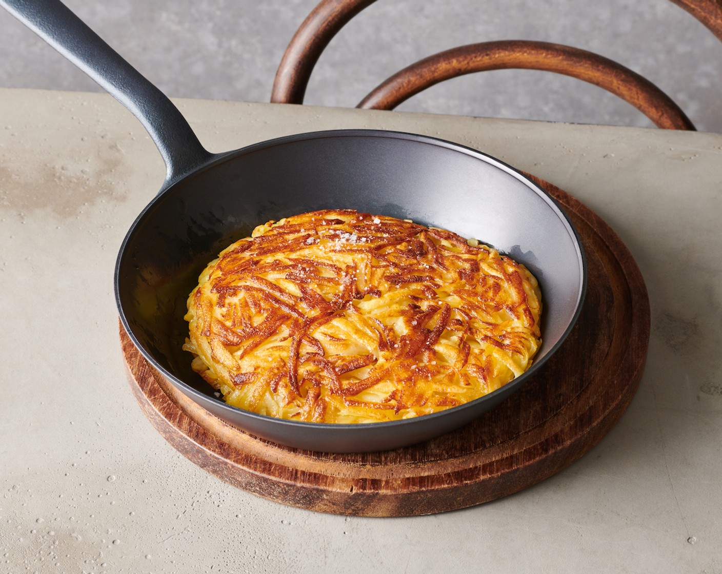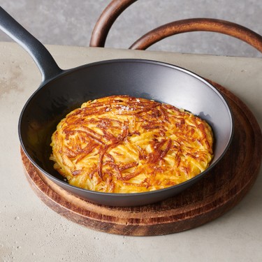 Eine goldbraune Rösti passt zu allen möglichen Gerichten mit Sauce oder auch einfach zu einem Salat.