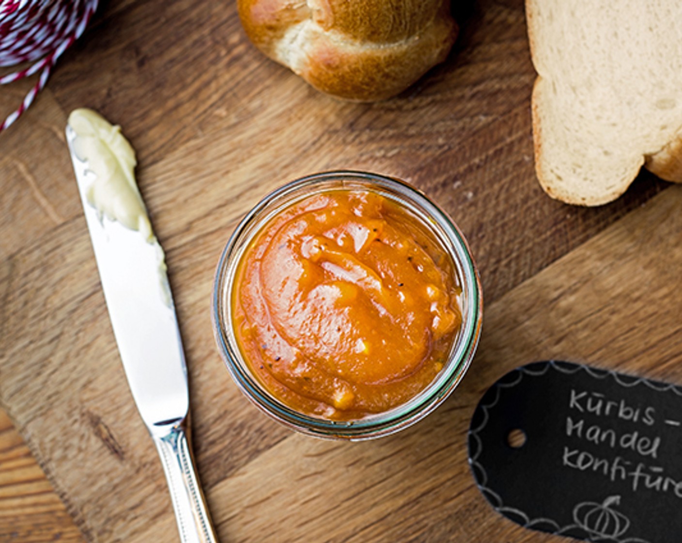 Ob gekocht, roh, süss oder salzig, aus Kürbissen lässt sich so einiges machen. Für einen süssen Start in den Tag folgend ein Rezept für eine genussvolle Kürbis -Mandel-Konfitüre!