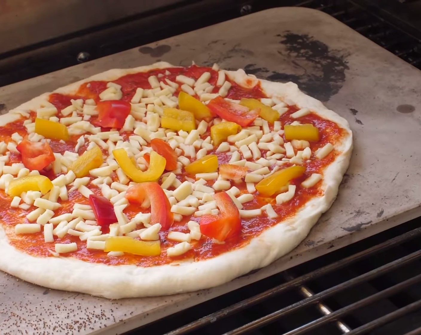 Den Grill mit dem Pizzastein zusammen auf 300 °C vorheizen bzw. bereitstellen.