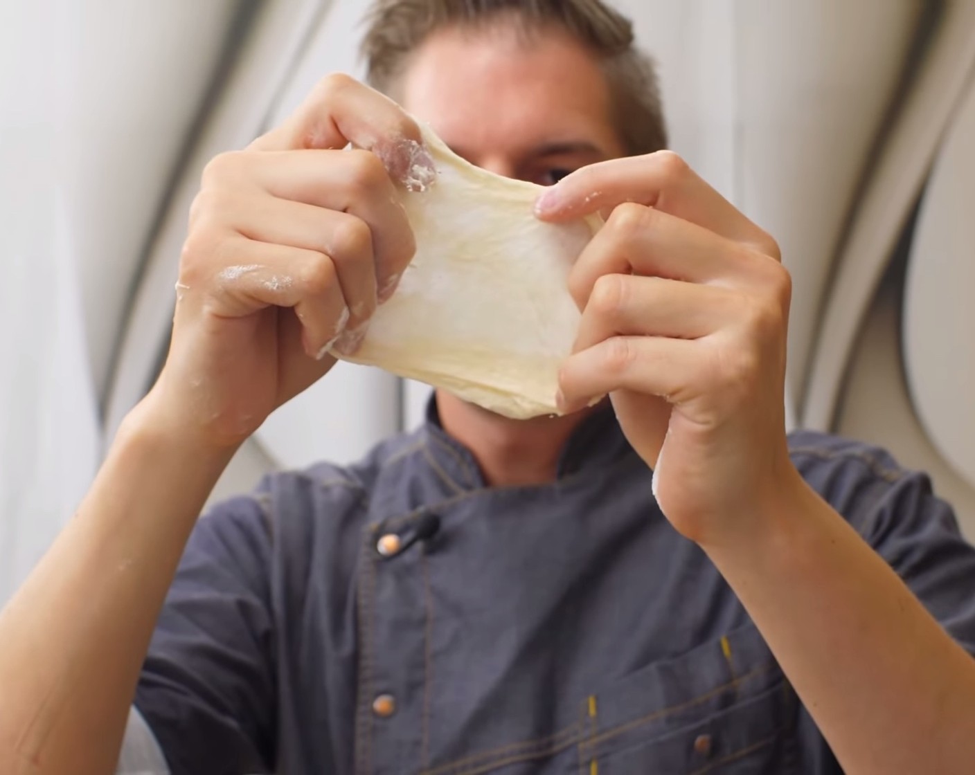Die Geschwindigkeit erhöhen und den Teig auf mittlerer Stufe 12-15 Minuten weiter kneten bis er die “Fensterprobe“ besteht. Wenn der Teig noch klebrig ist und reisst, weiter kneten, bis er die Fensterprobe besteht.