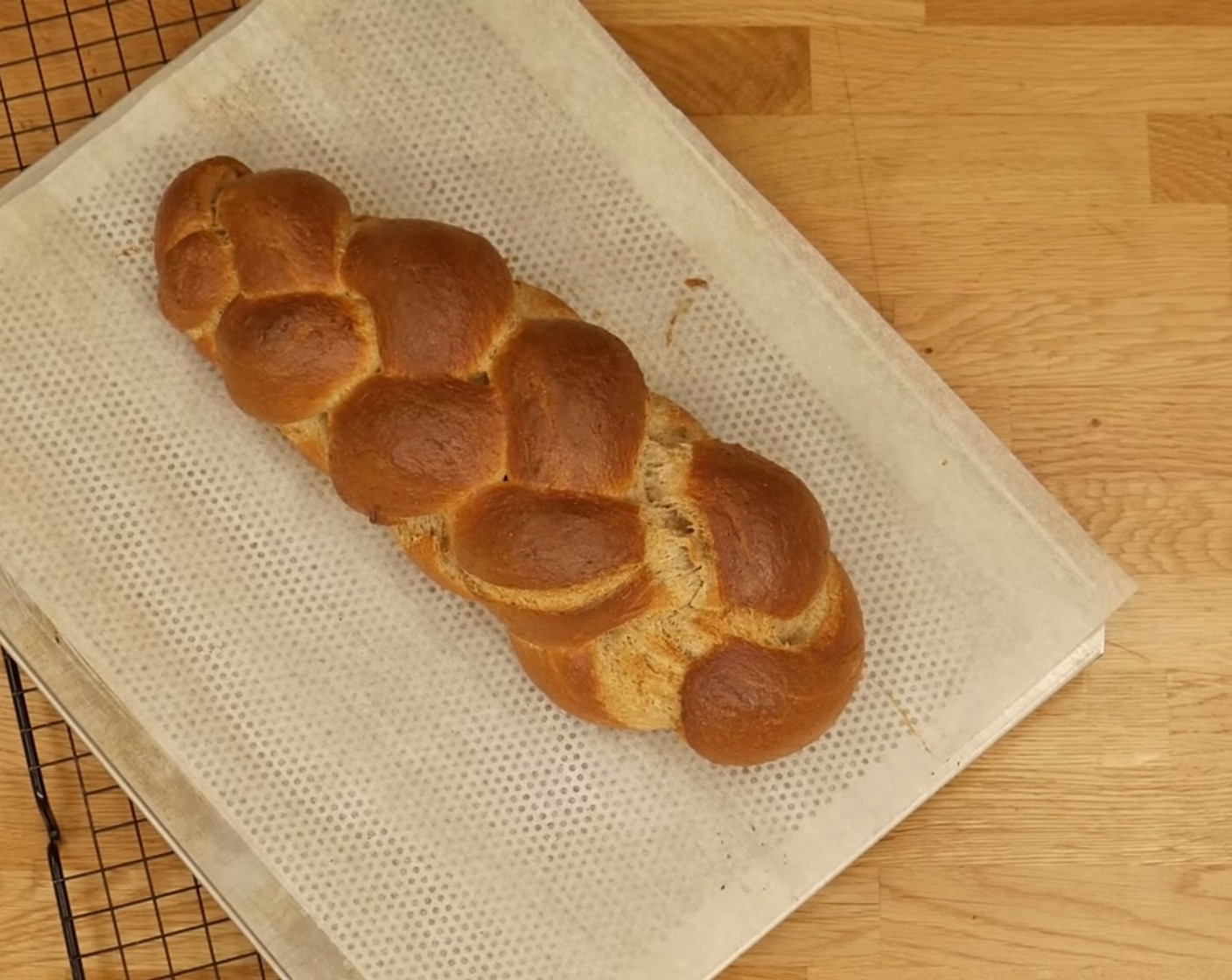 Nach dem Backen den Zopf auf einem Kuchengitter auskühlen lassen.