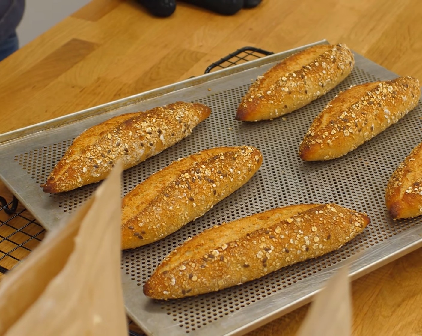 Direkt nach dem Backen die Brote auf einem Gitter auskühlen lassen.