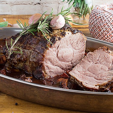Glasierte Schweinschulter mit Lavendel, Honig und schwarzem Pfeffer.