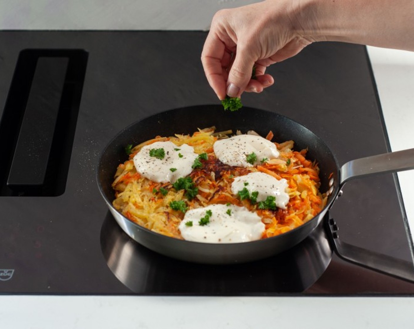 Mit unserem Rezept zauberst du eine knusprige Gemüserösti mit geschmolzenem Mozzarella auf den Tisch. Dieses vegetarische Rezept eignet sich bestens, um Gemüsereste aufzubrauchen und eine gesunde Mahlzeit für deine Liebsten zu kreieren.