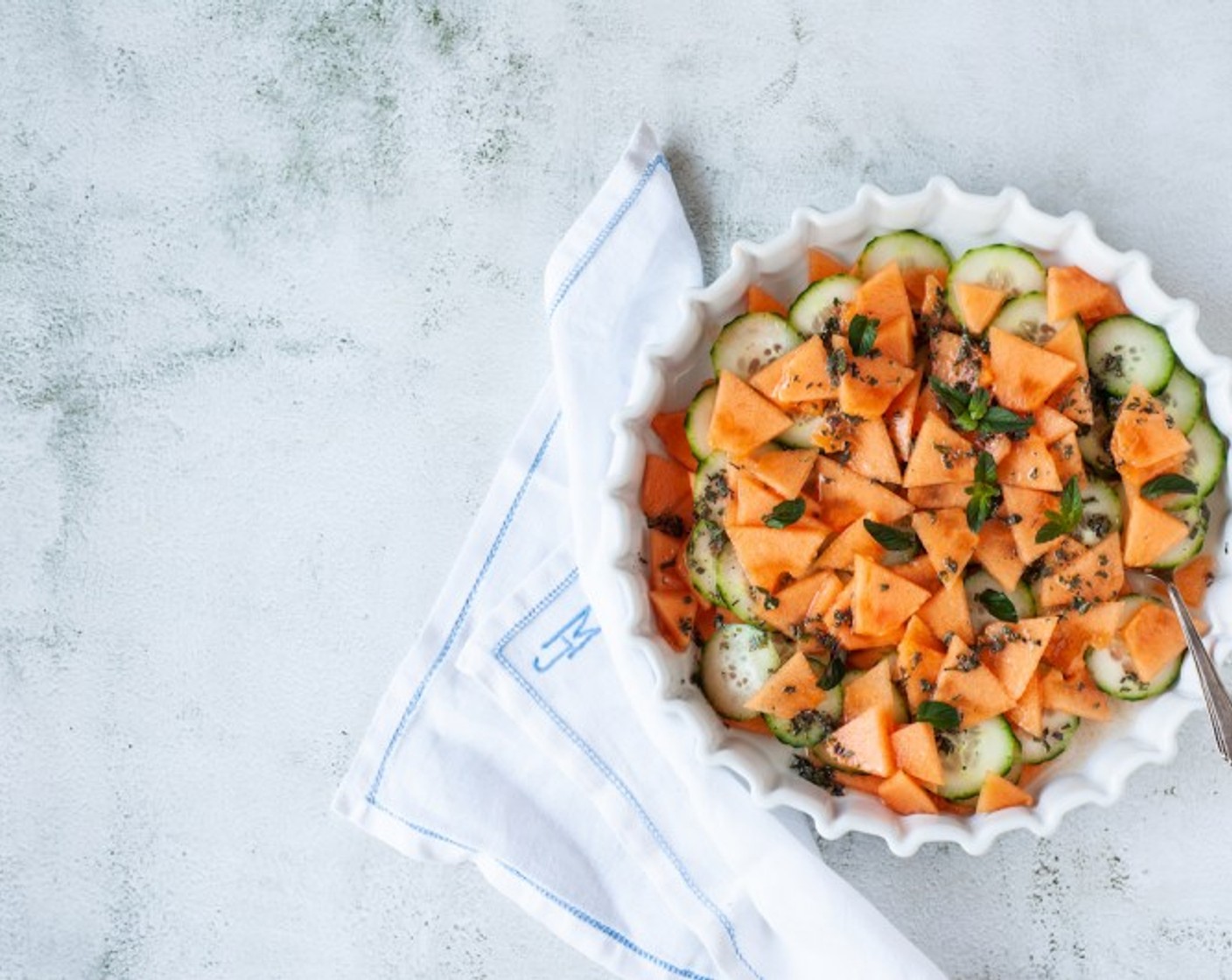 Das Rezept für den Melonen-Salat an Pfefferminz-Sauce ist aus dem eKochbuch «Salatsaucen» vom Foodmagazin «Kids am Tisch». Der erfrischende Salat mit der milden Sauce eignet sich ausgezeichnet für Familien. Kinder mögen Salate mit Früchten und einer süsslichen Sauce.