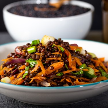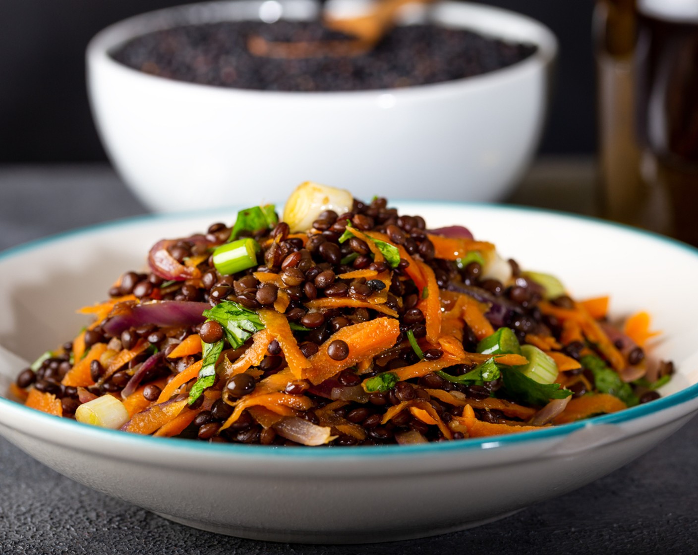 Beluga-Linsen sind nicht nur lecker, sondern auch optisch ein Highlight. Ihr nussiger Geschmack und die bissfeste Konsistenz machen diesen Salat zu einem wahren Genuss. Kombiniert mit aromatischen Kräutern wie Koriander und einem Hauch Garam Masala ist dieser Salat eine bunte Explosion an Aromen – perfekt als Beilage zu Fisch und Meeresfrüchten oder als leichtes Hauptgericht. Probier’s aus, deine Geschmacksnerven werden es dir danken.