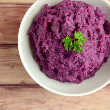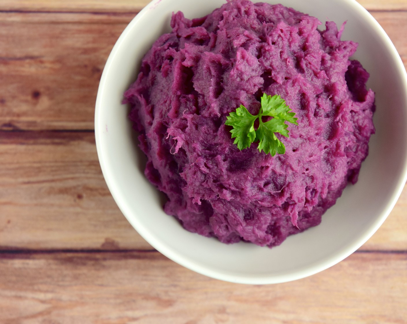 Ein farbliches Highlight auf dem Teller! Dieser Kartoffelstampf erhält durch die Zugabe von Rotkohl seine schöne Farbe. Mit Rahm und Butter veredelt, schmeckt er pur genauso gut wie mit einem Topping aus brauner Butter oder knusprigem Speck. Perfekt als besondere Beilage zu Fleisch und Fisch – ein Genuss, der garantiert auffällt.