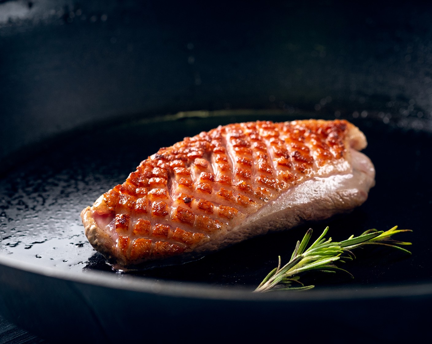 Ein echtes Fest für den Gaumen! Diese zarte Entenbrust, schonend im Sous-Vide-Verfahren gegart, entfaltet ihr volles Aroma und wird durch ein mediterranes Tomaten-Concassé und herzhafte Oliven perfekt abgerundet. Die Kombination aus saftigem Fleisch und aromatischen Zutaten macht dieses Gericht zum Highlight für besondere Abende. Ein Genussmoment, der garantiert Eindruck hinterlässt.