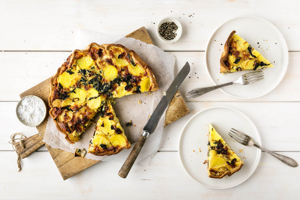 "name": "Kartoffel Mangold Quiche mit Speck",