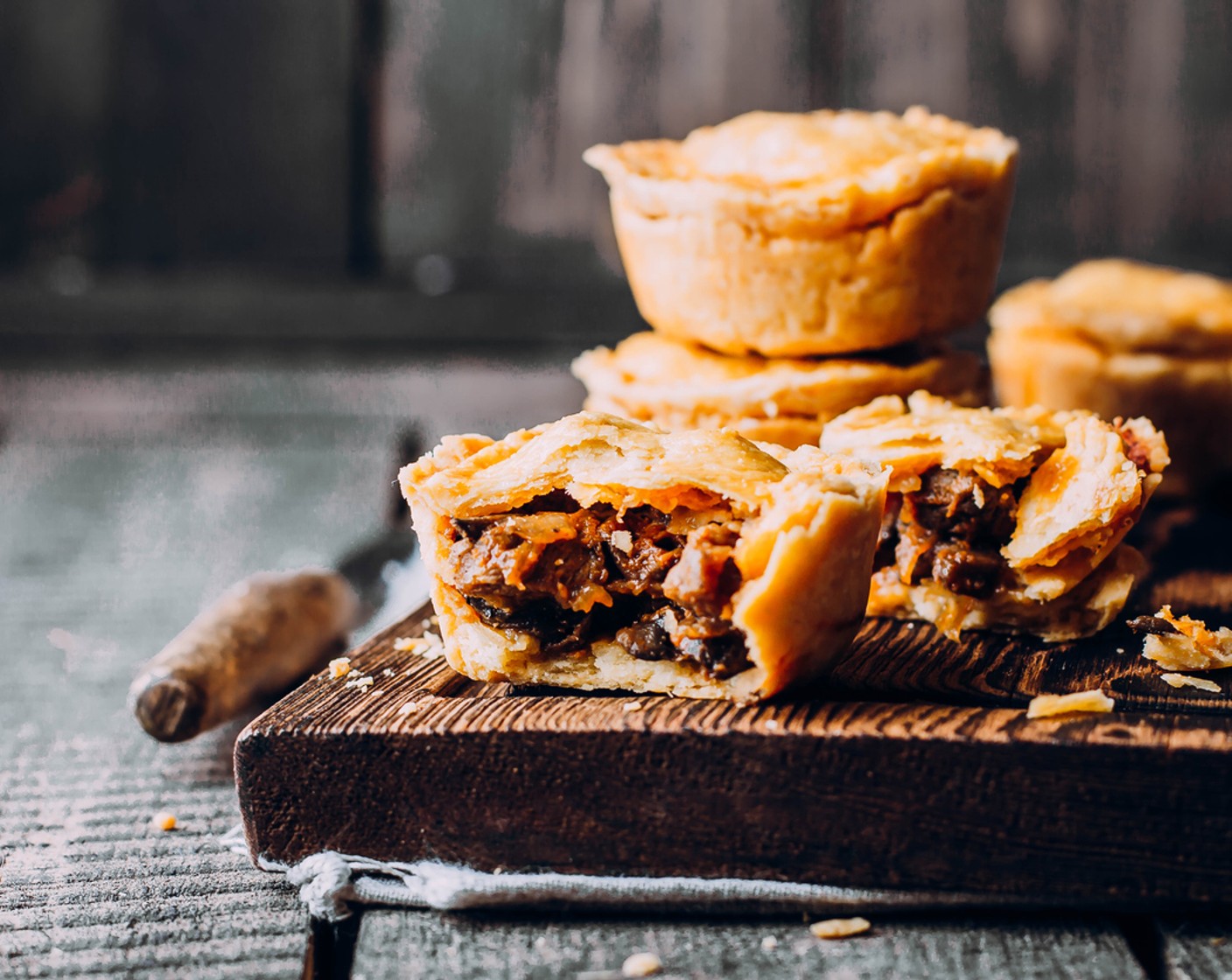 Hole dir britisches Flair in deine Küche mit unseren englischen Mini-Meat-Pies. Herzhafter Blätterteig umhüllt eine saftige Füllung aus Hackfleisch und weissen Champignons – diese kleinen Pastetli überzeugen als deftige Vorspeise oder als Fingerfood mit ihrer rustikalen Einfachheit und ihrem intensiven Geschmack. Und das Beste: Sie lassen sich wunderbar vorbereiten.