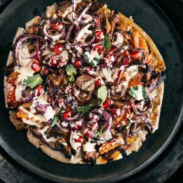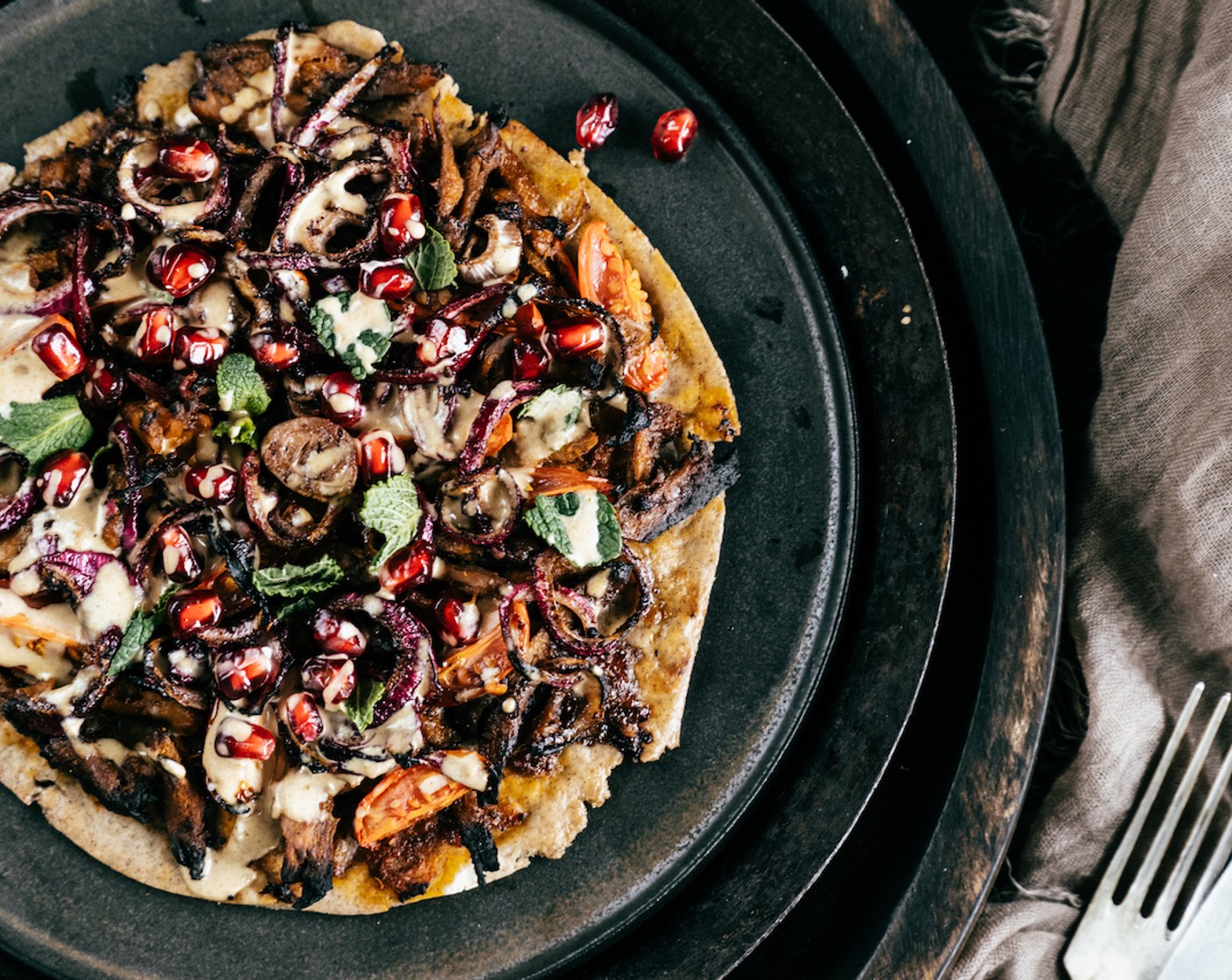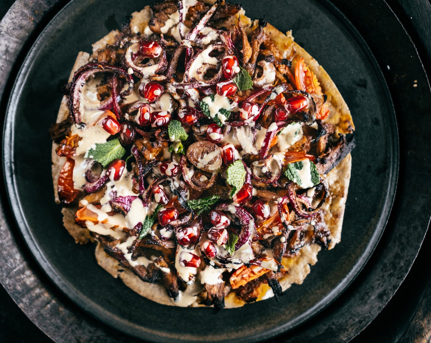 Würzig, scharf, fruchtig, nussig: Orientalische Pizza mit Planted Pulled Pork.