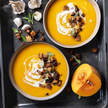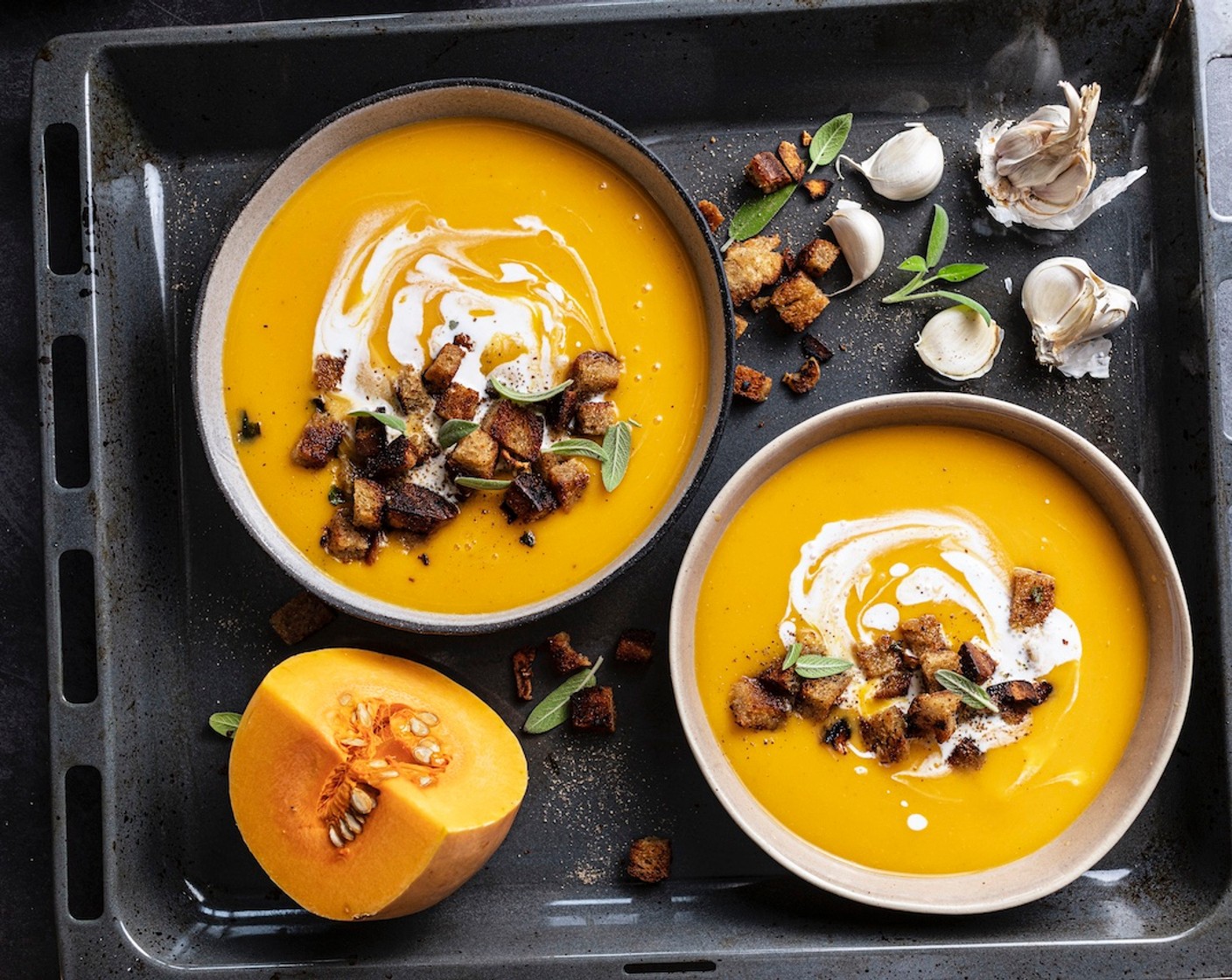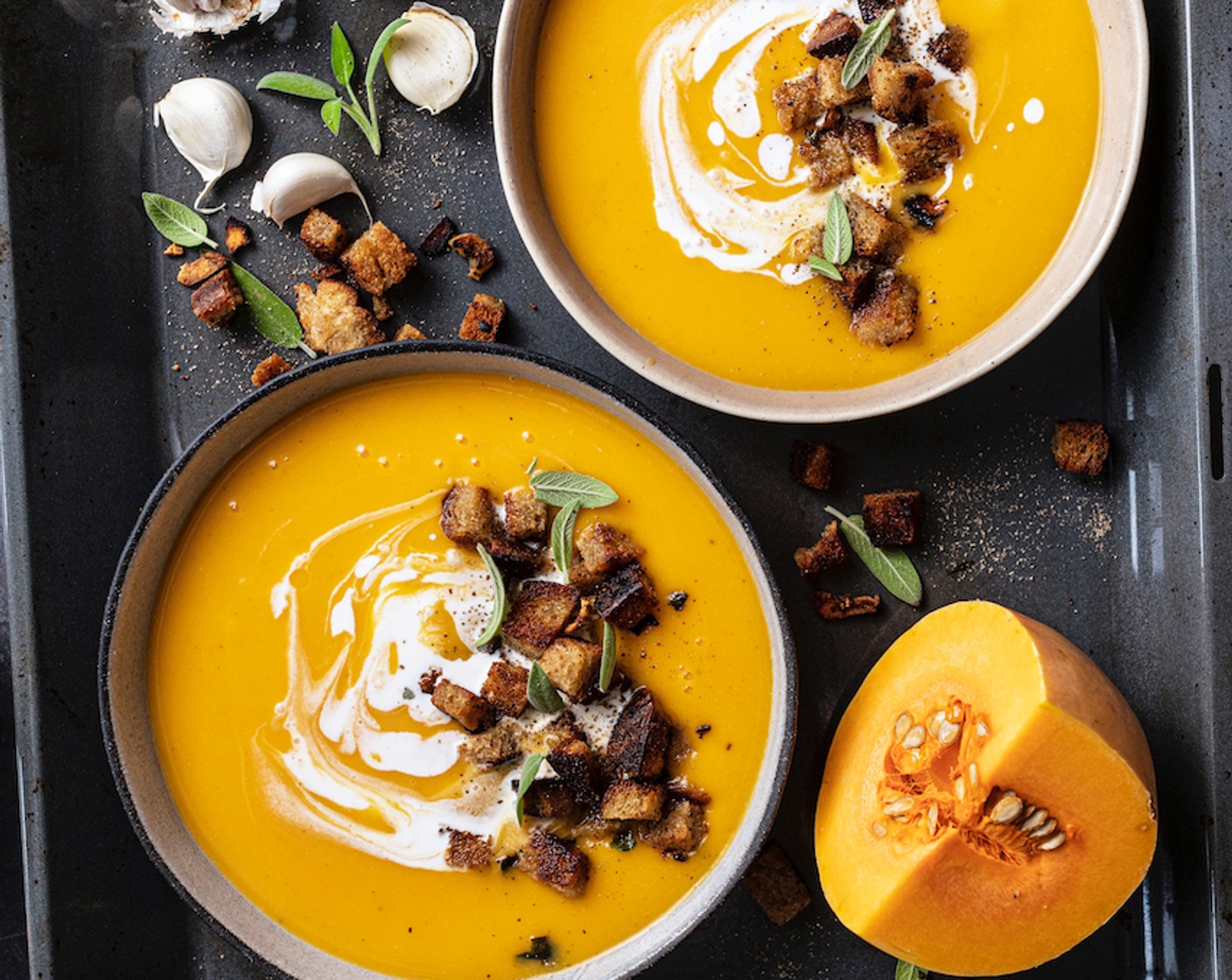Manche Klassiker verleiden einem nie – diese Kürbissuppe ist perfekt für kalte Herbsttage! Besonders fein wird dieses Rezept mit den frisch mit Knoblauch gerösteten Croûtons.