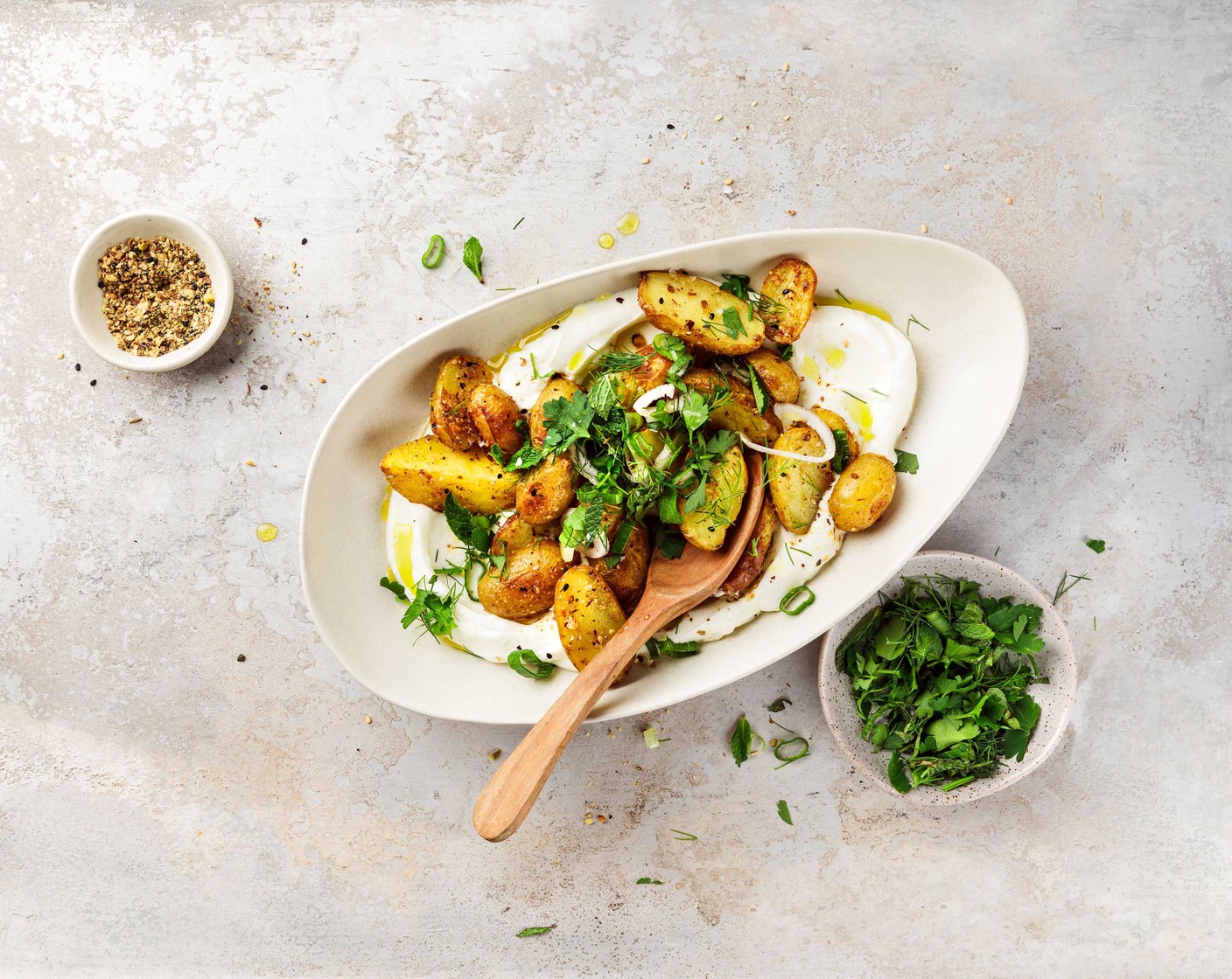 Frühkartoffeln auf Labneh