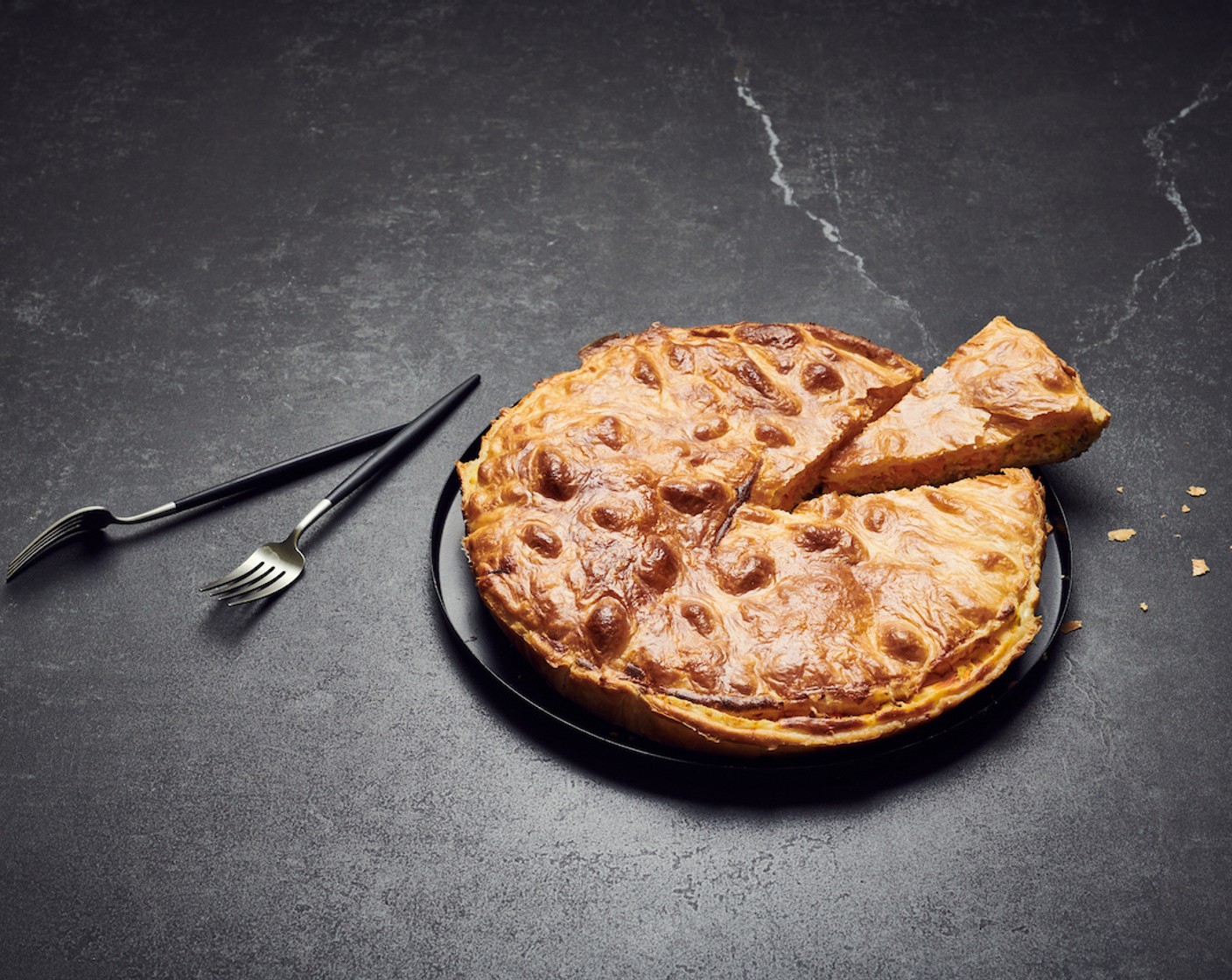 Ein vegetarischer gedeckter Blätterteigkuchen.