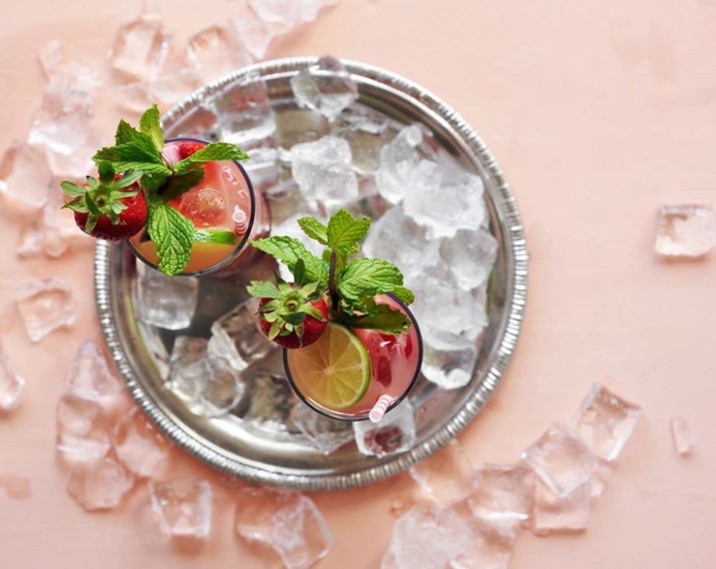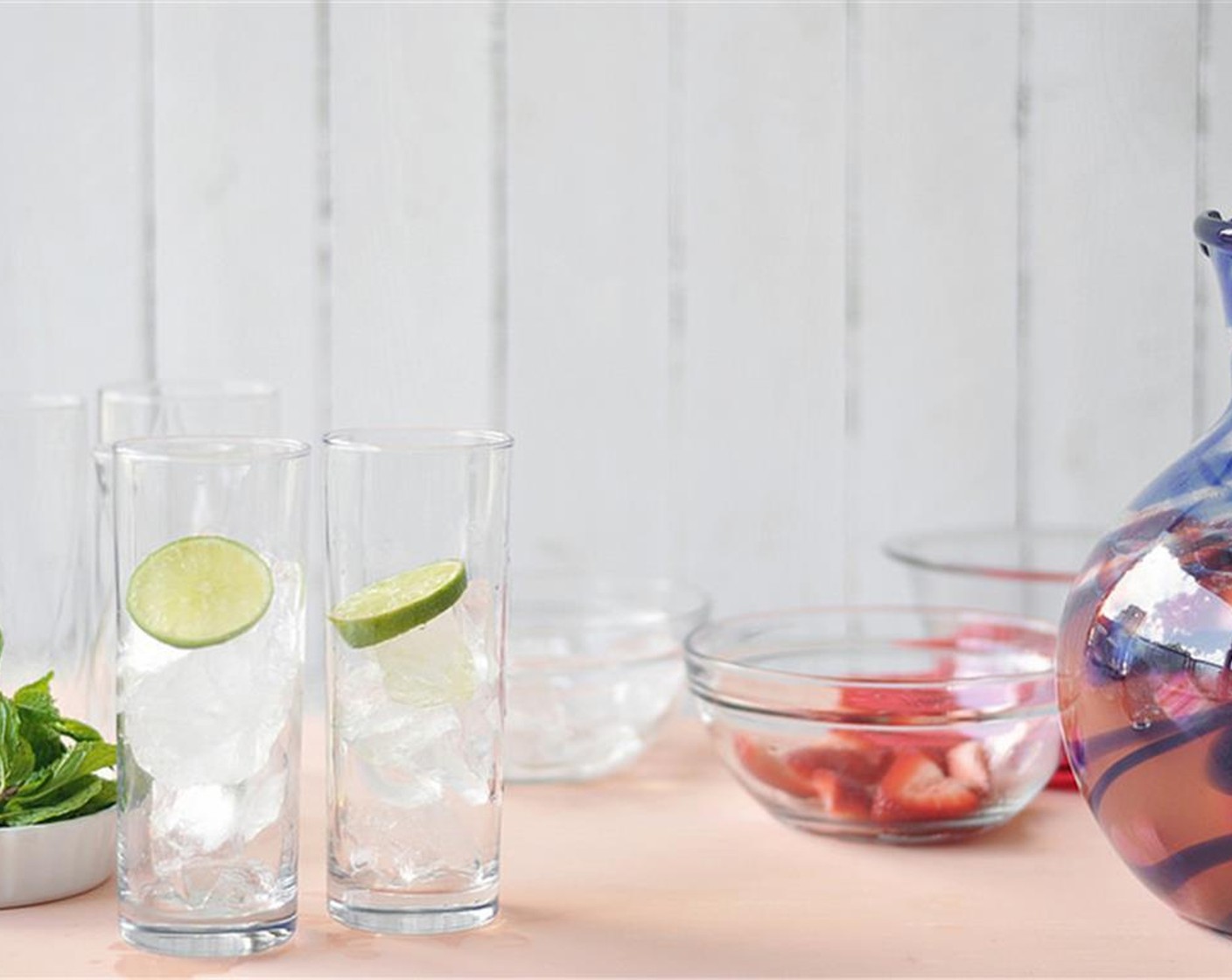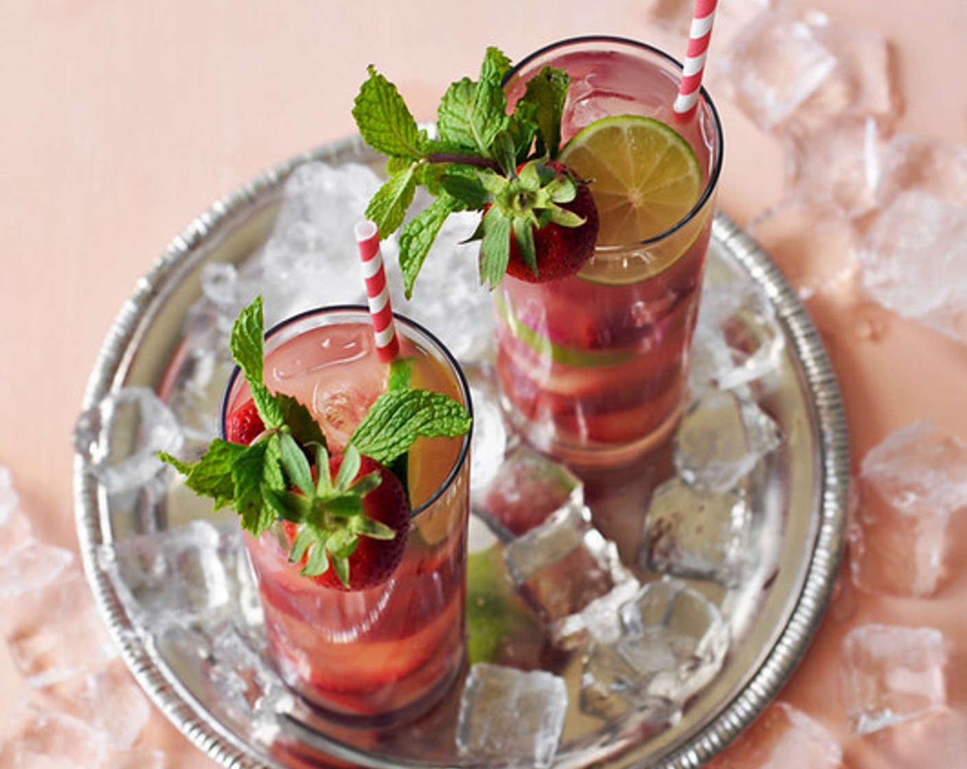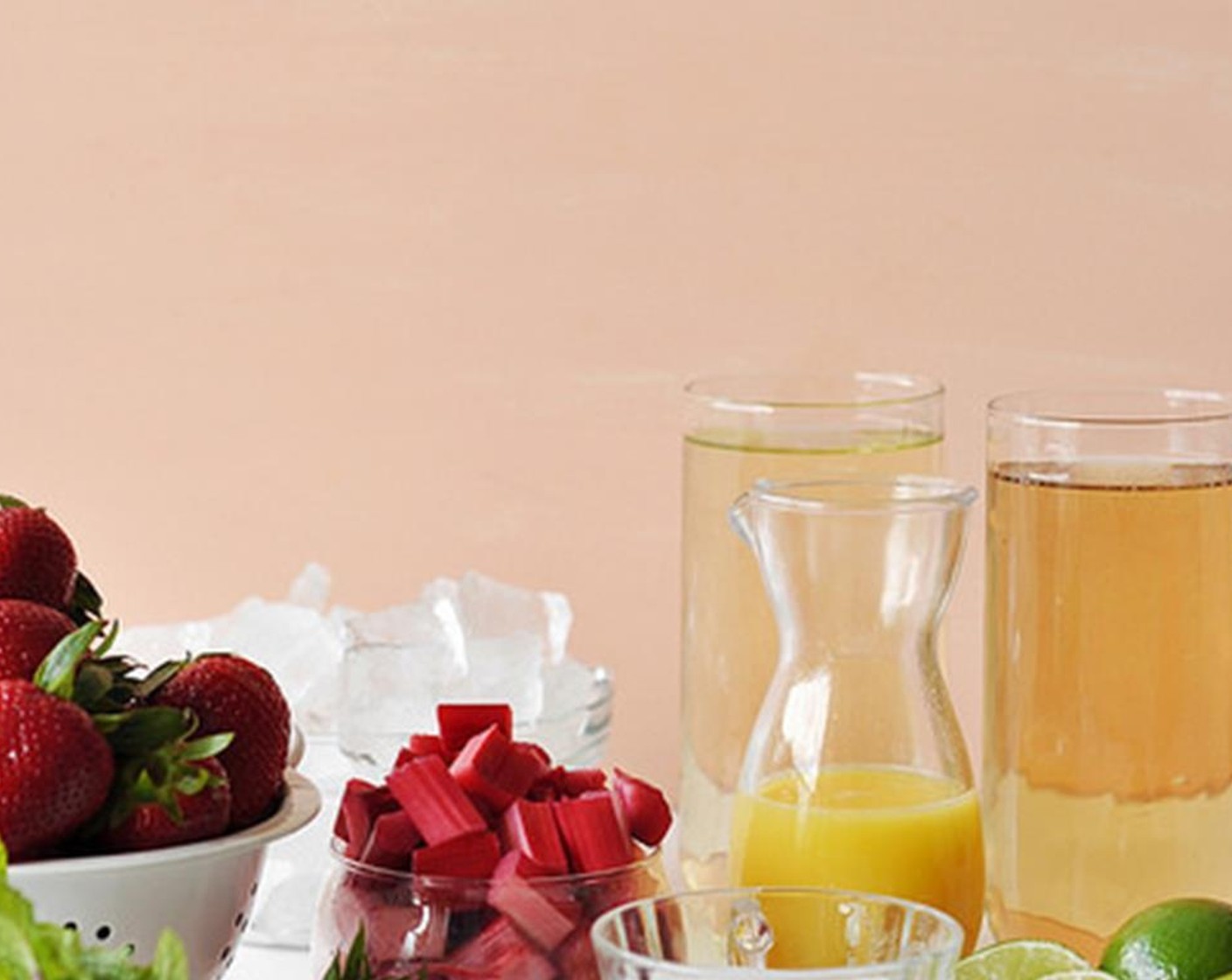 Eine köstliche und erfrischende Sangria mit frischen Erdbeeren und Rhabarber.