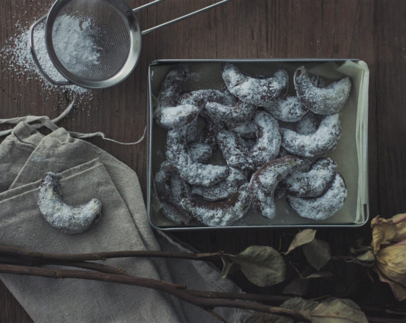 Vanillekipferl gehören bei uns schon zum Standard des Weihnachtsgebäcks, daher haben wir für euch eine leicht veränderte Variante: Schokokipferl! Einzige neue Zutat ist Kakaopulver, welche diese Guetzli richtig schokoladig schmecken lässt. Für uns sind die Schokokipferl eine willkommene Abwechslung auf dem Guetzliteller!
