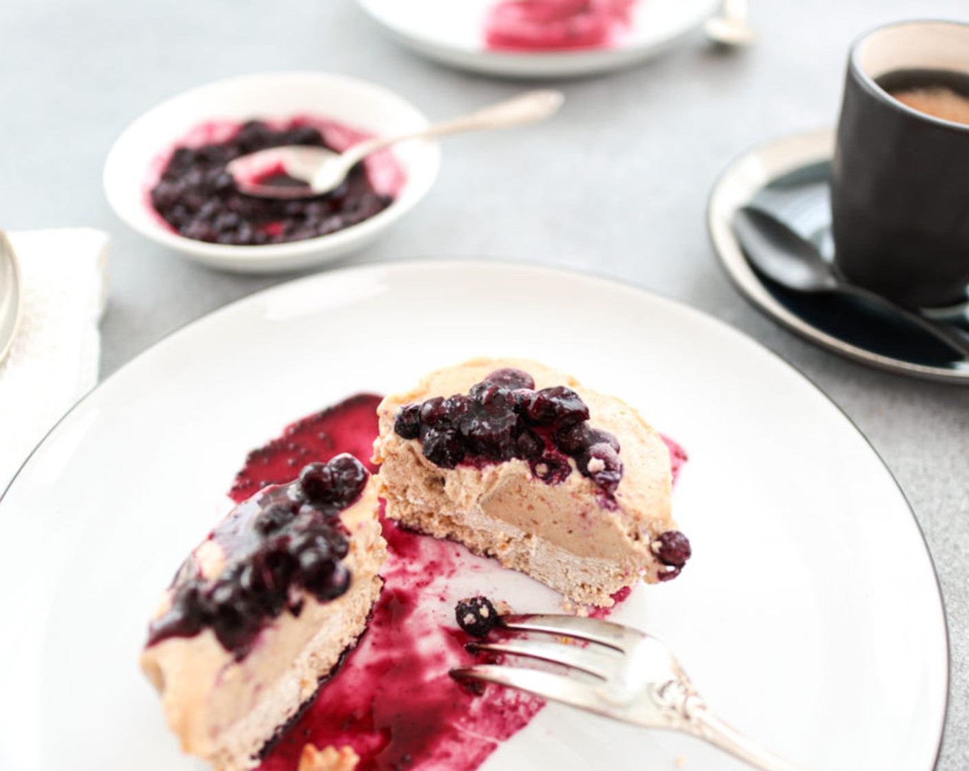 Ein gefrorenes reichhaltiges Dessert mit Cashewpaste, Datteln und Vanille, dass im Mund schmilzt.