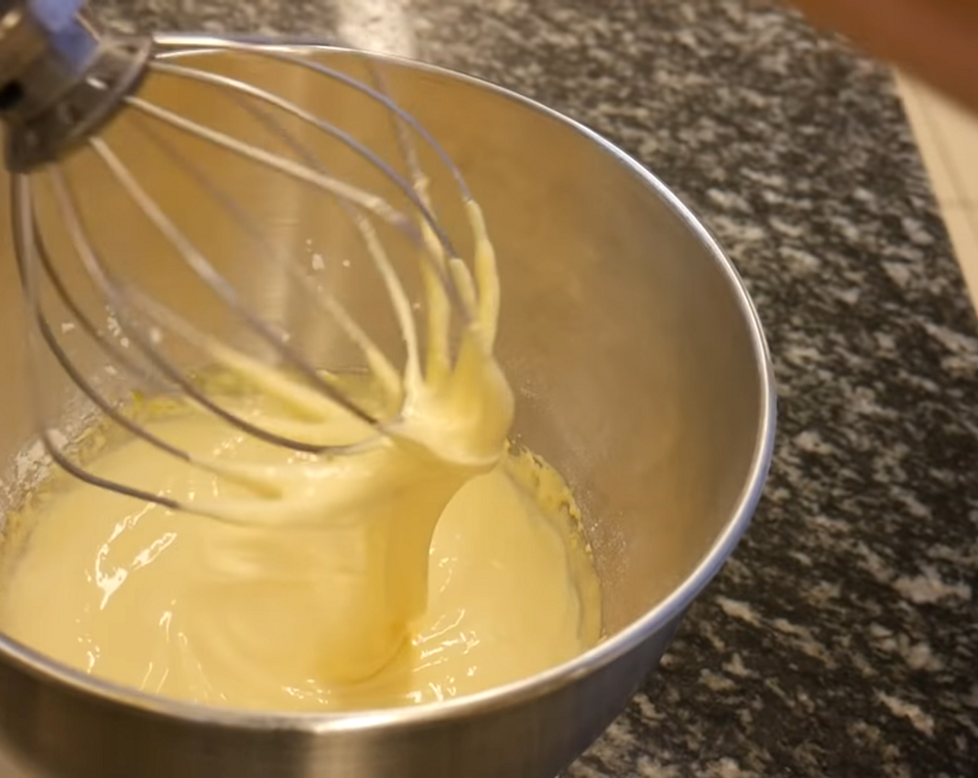 Um eine intensivere Bindung zu erreichen, die Schüssel über einem heissen Wasserbad nochmals erwärmen und ständig rühren.