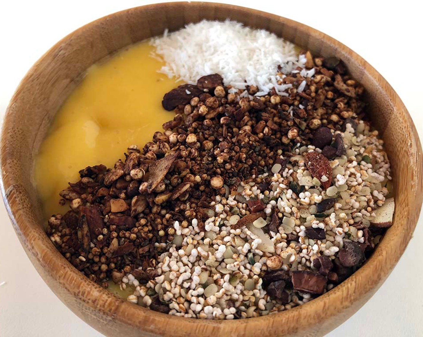Juli steht für Sommer und Sonne. Daher gibt es eine Sommer Smoothie Bowl mit leckeren Früchten, die viele Vitamine, Mineralstoffe, Spurenelemente, Antioxidantien und Ballaststoffe enthalten.
