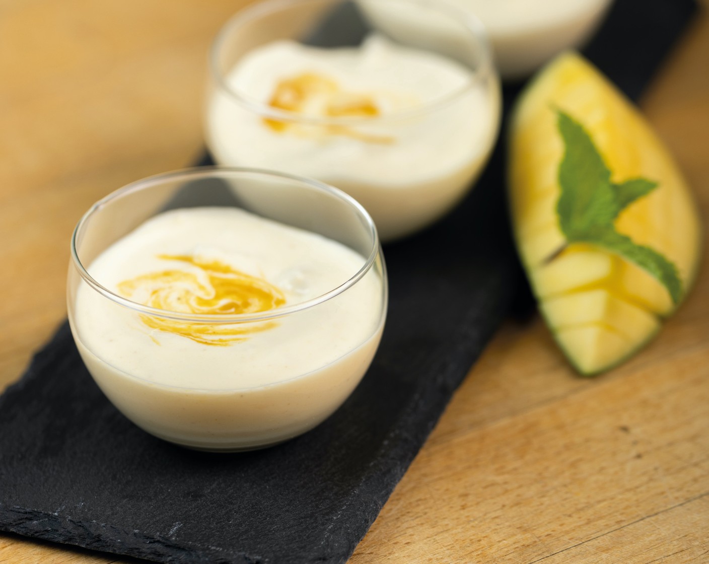 Wer für diese 5-Minuten-Crème keine Alphonso-Mangos findet, kann diese auch mit einer anderen, sehr reifen und geschmacksintensiven Mango ersetzen.