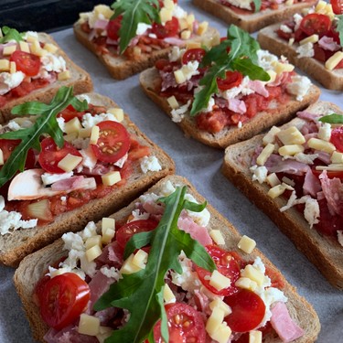 Schnelle Pizza-Toast mit Schinken und Käse.