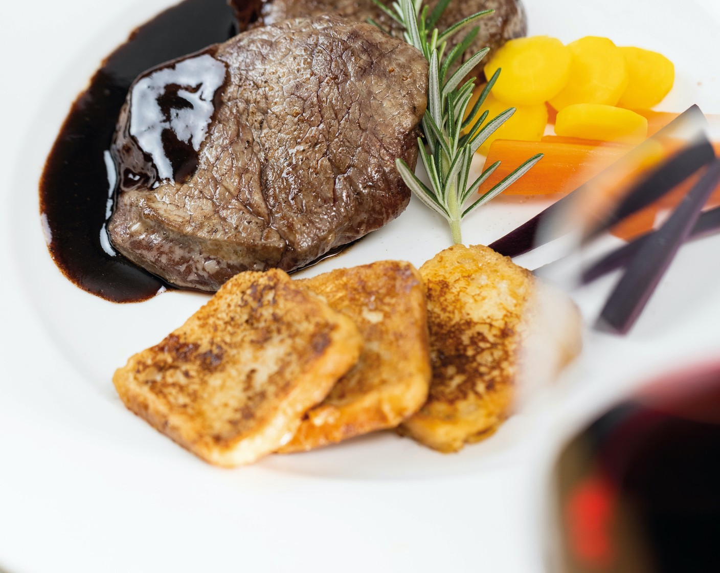 Das Rindsfilet ist eine klassische Hauptspeise mit einer überraschenden Beilage. Die Steinpilz-Pain-Perdu lohnen sich definitiv.