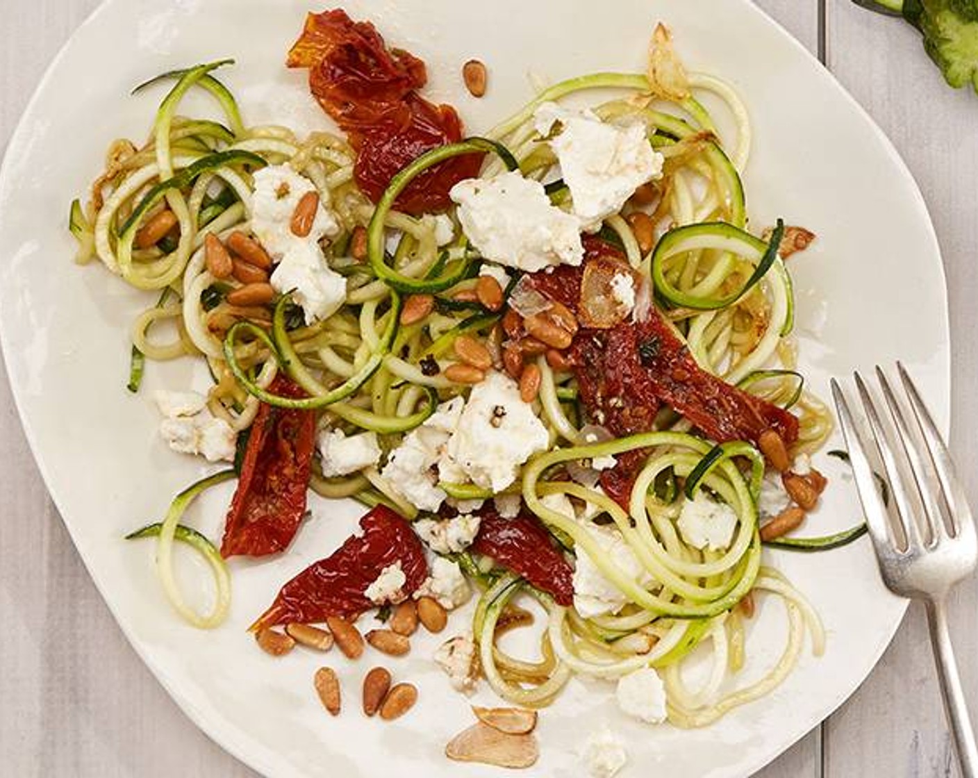 Kennst du Zoodles? Die hippen Nudeln aus Zucchinistreifen sind arm an Kohlehydraten, glutenfrei und voller Geschmack! Du brauchst nur noch einen Spiralschneider, und schon kannst du fröhlich drauflos nudeln.